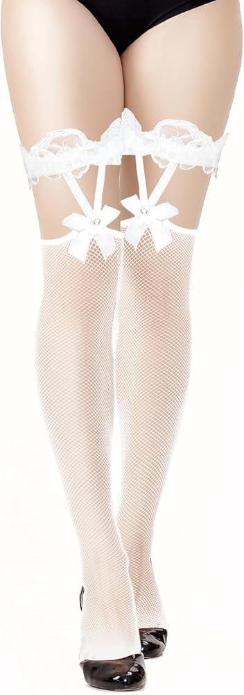 Dohia Women Fishnet Stockings Sexy Lace Top Fishnet Stockings Mesh Thigh High Stockings Bow Suspenders Thigh High Stockings