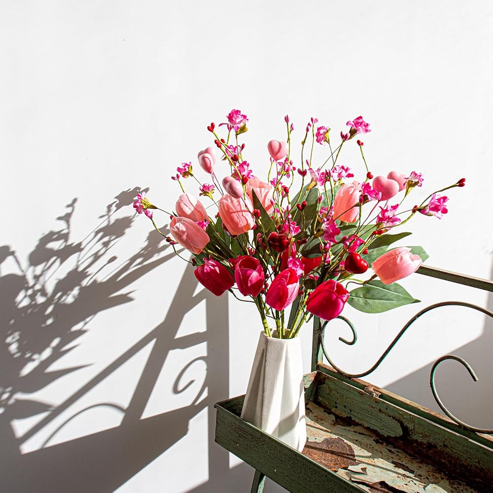 • 【عالية الجودة】سيقان عيد الحب هذه مصنوعة يدويًا من مواد فاخرة على يد محترفينا. على عكس الزهور الحقيقية التي تذبل بسهولة، لا تبدو هذه التيوليب الاصطناعية واقعية جدًا فحسب، بل تحافظ أيضًا على الألوان الزاهية إلى الأبد. كزينة لعيد الحب، فإنها تخلق جوًا رومانسيًا لفترة طويلة.