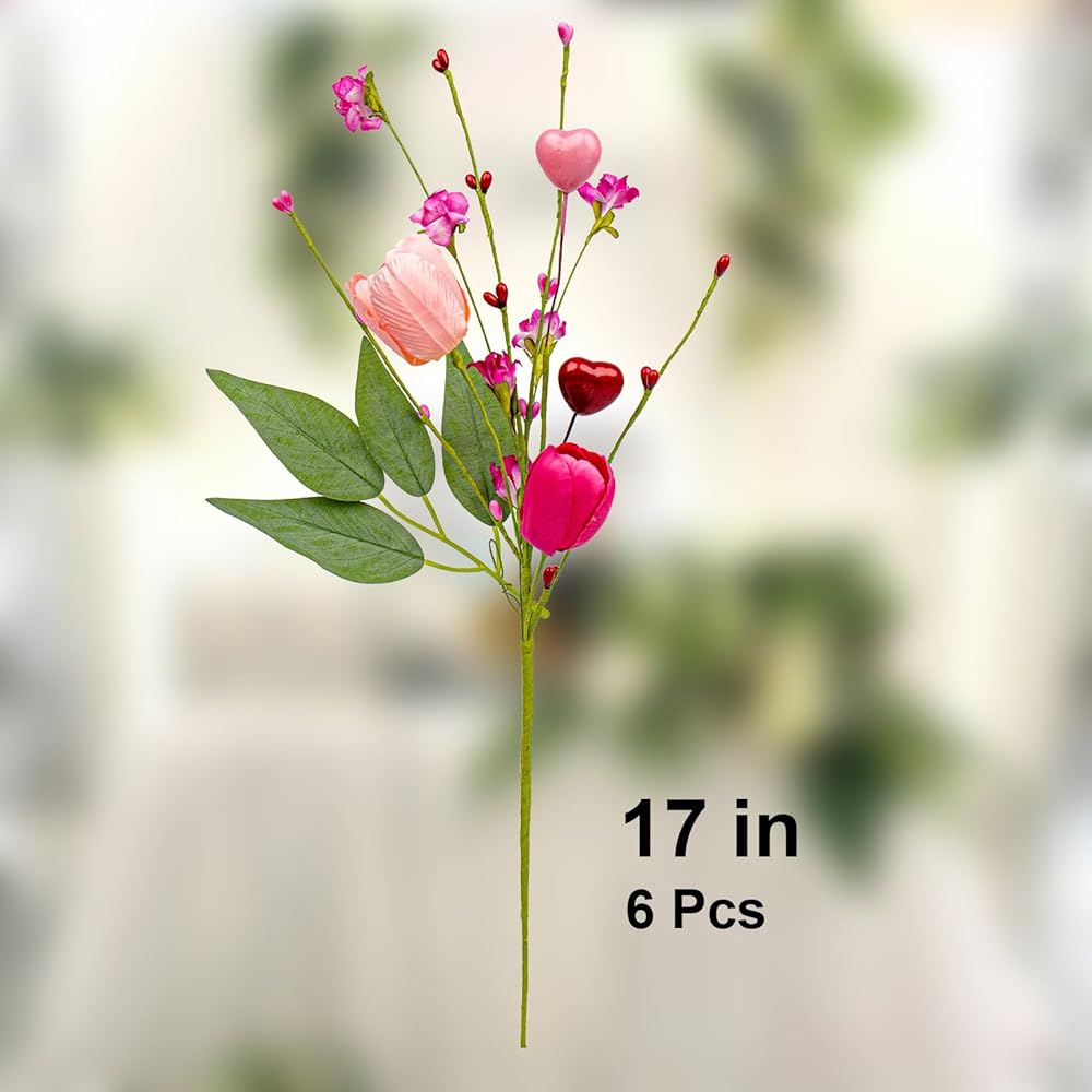 • 【الحجم والكمية】توجد 6 قطع من عيد الحب مزينة بأزهار التيوليب الحمراء والوردية والقلوب في العبوة. يبلغ حجم كل قطعة من الزهور حوالي 17 بوصة/43 سم. طويلة. كهدايا وديكورات في عيد الحب، فإن سيقان الزهور الوردية هذه جميلة ورومانسية.