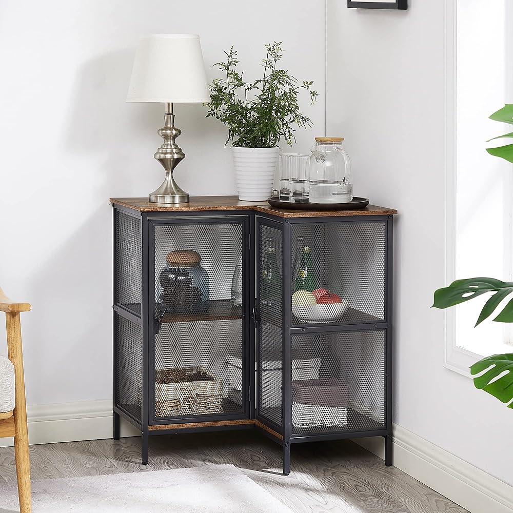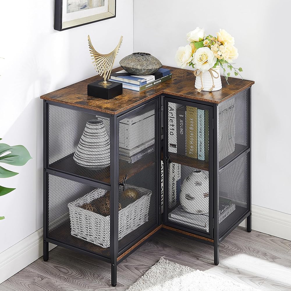 [قوي ومستقر] - خزانة الزاوية هذه ذات الأبواب مصنوعة من إطار معدني وخشب هندسي موثوق؛ يتميز الإطار المعدني بتقنية الرش المقاومة للماء والمتينة، مما يضمن ثبات طاولة الزاوية والاستخدام لفترة طويلة.
