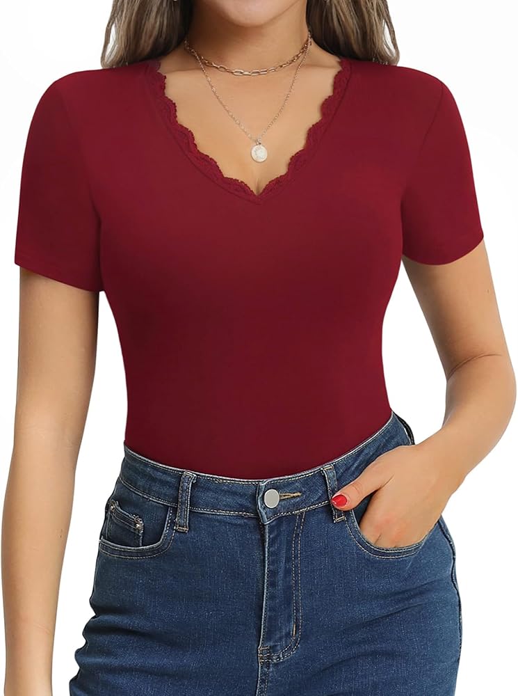 V-Neck Lace Allure: Unleash your inner charm with the exquisite V-neckline adorned with delicate lace. This bodysuit top for women not only flatters your elegant curves, but also shows your charming temperament, making you easily become a bright star.