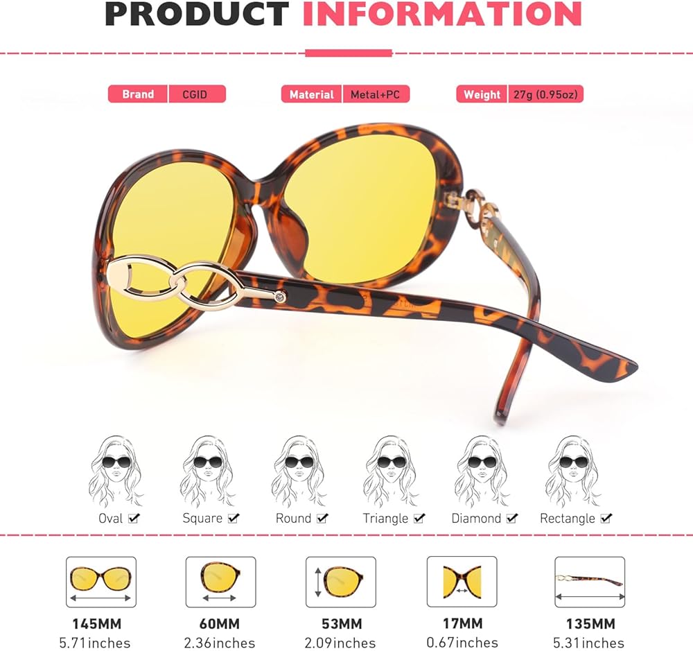 【تتكيف مع جميع المناسبات】 نظارات الرؤية الليلية CGID خفيفة الوزن للغاية بحيث ستتمتع بتجربة ارتداء مريحة عند القيادة أو صيد الأسماك أو ركوب الدراجات أو التسلق. كما أنها مناسبة للأيام الممطرة أو الضبابية أو الغائمة أو أي حالة قاتمة أخرى لتفتيح رؤيتك. كما يمكن استخدامها كنظارة كمبيوتر وتحمي عينيك من الأشعة فوق البنفسجية الضارة والأضواء الزرقاء.