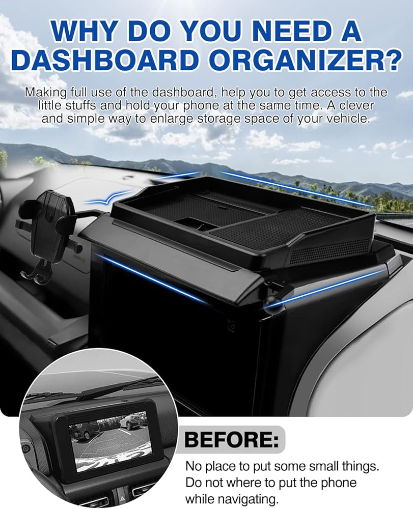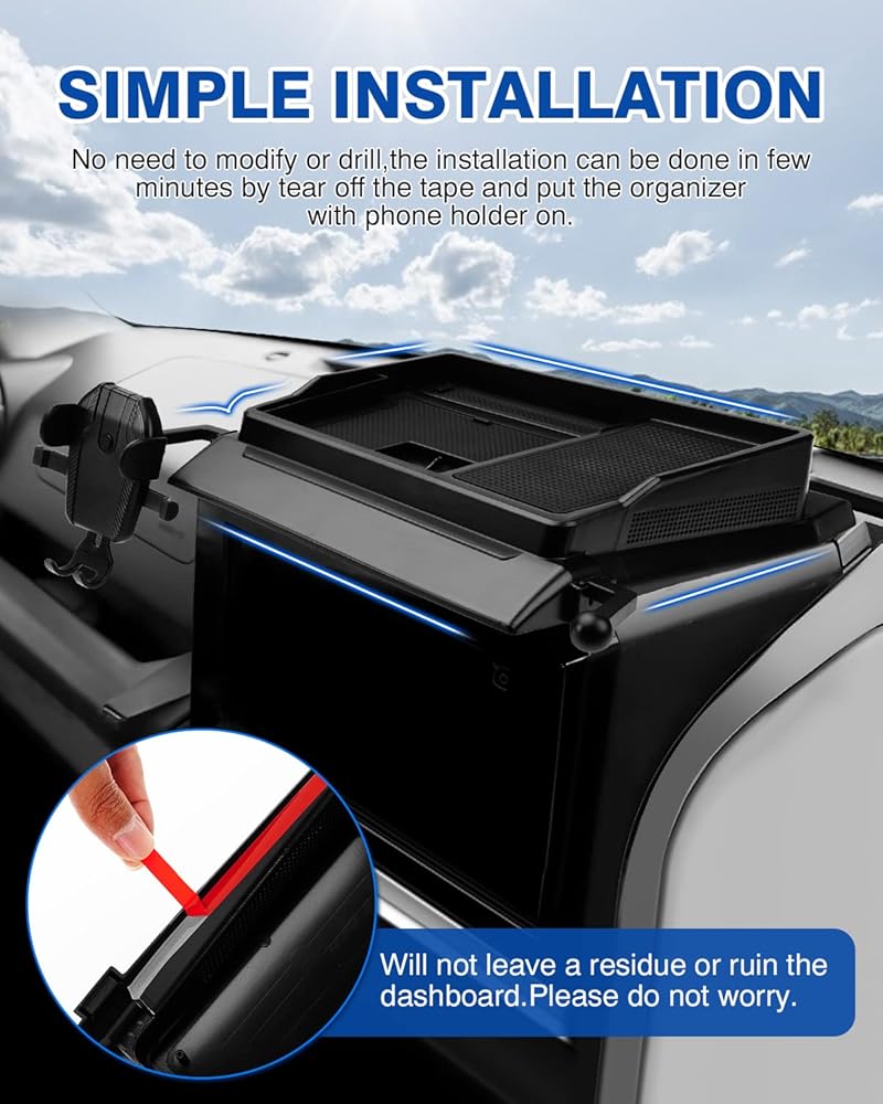 سهل التركيب وقابل للغسل: أدخله مباشرة في لوحة القيادة. من السهل إزالته وشطفه بالماء للحصول على مظهر جديد في لحظة عندما يتسخ المنظم مع حامل الهاتف!