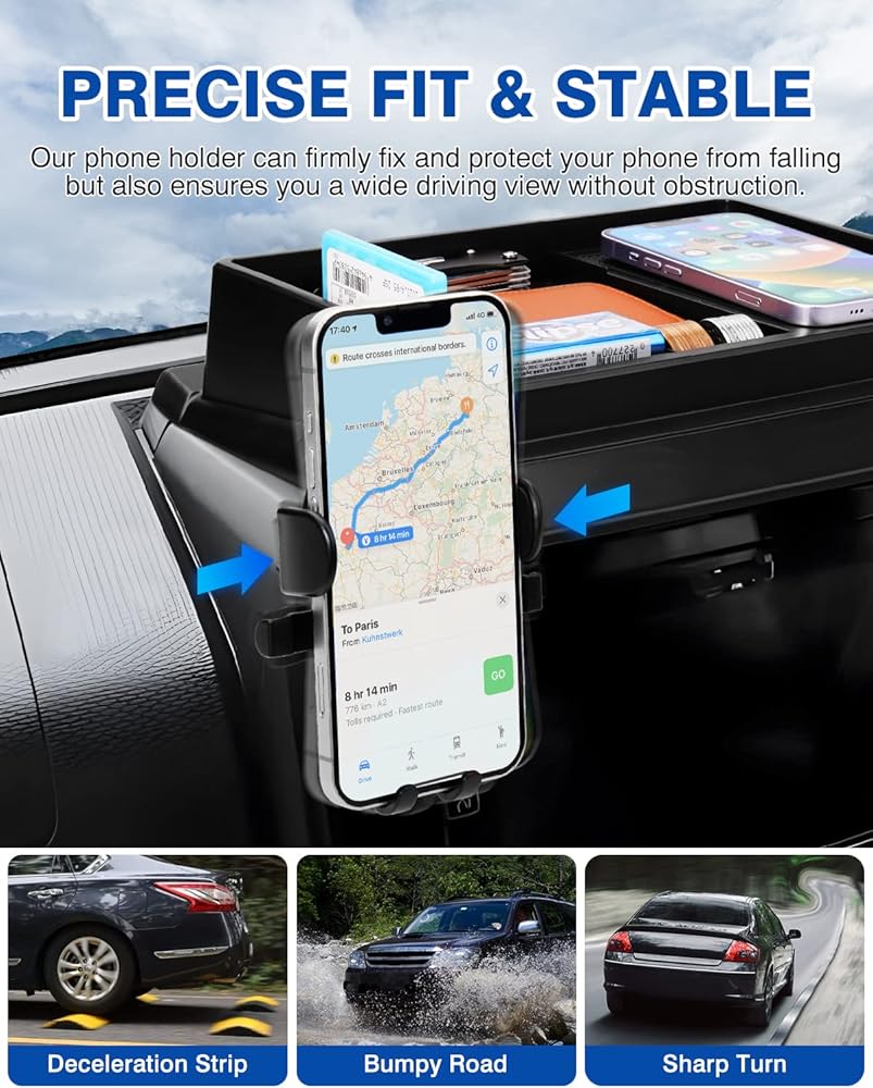 تطابق تمامًا: مصمم خصيصًا وفقًا لدرج لوحة القيادة. تتوافق الأبعاد والمنحنيات بشكل مثالي مع التصميم الداخلي، مما يضمن بقاء صندوق تخزين لوحة العدادات الموجود في لوحة العدادات ثابتًا ومستقرًا. لذلك لن تنزلق أو تصدر أصواتًا مزعجة عند التسارع أو التباطؤ أو التوقف.