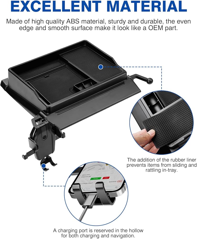 منظم جيد الصنع: مصنوع من غلاف ABS متين وقوي. تمنح الحافة المتساوية والسطح الأملس منظم لوحة القيادة مظهرًا لجزء OEM. بالإضافة إلى ذلك، فإن البطانة المطاطية المتوفرة التي لا طعم لها وغير سامة تمنع بشكل فعال العناصر من الانزلاق والخشخشة.