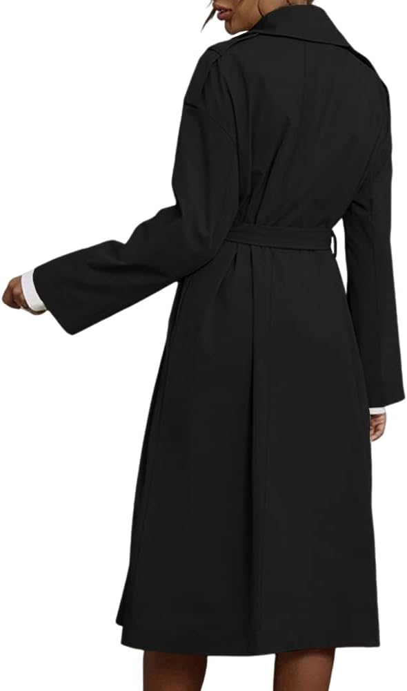 المزايا: معطف نسائي متوسط الطول يتميز بصدر مزدوج/طول ربلة الساق/جيبين مائلين/حزام/ياقة فجوة/كتاف بأزرار/سترة واقية/معطف طويل