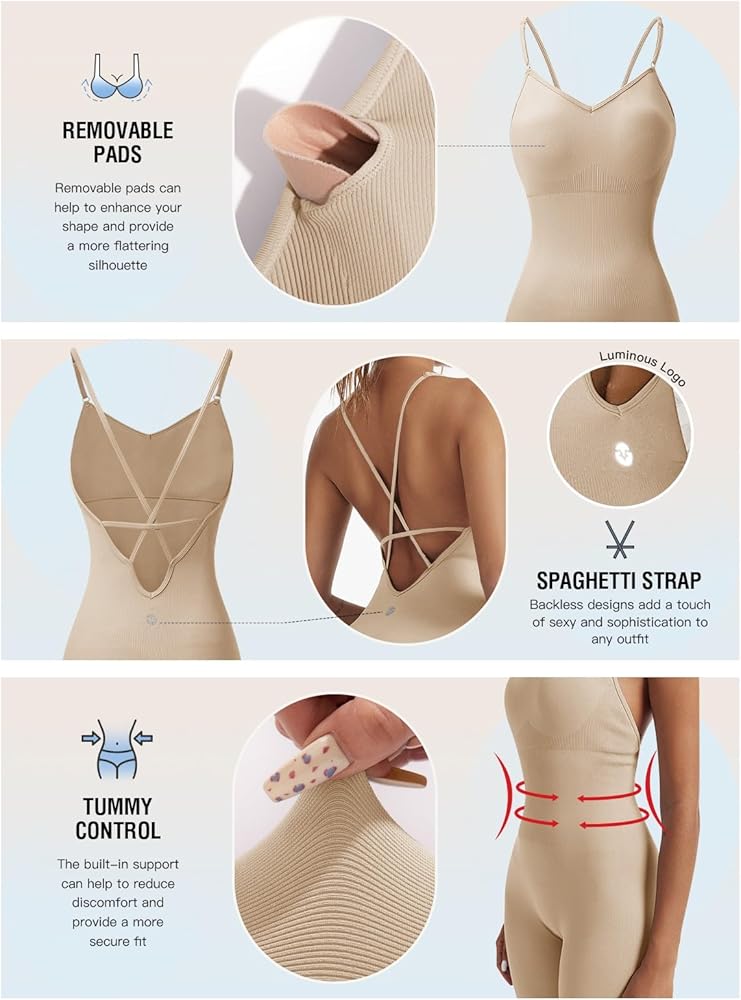 تصميم بذلة أنيقة: تتميز هذه البدلة المبطنة المكونة من قطعة واحدة بدون ظهر بأشرطة سباغيتي قابلة للتعديل وصورة ظلية ضيقة، مما يبرز منحنياتك الطبيعية. يضيف التصميم بدون أكمام والأسلوب بدون ظهر لمسة من الأناقة والرقي. توفر السراويل الضيقة Unitard مظهرًا سلسًا، مما يضمن لك الشعور بالثقة والأناقة