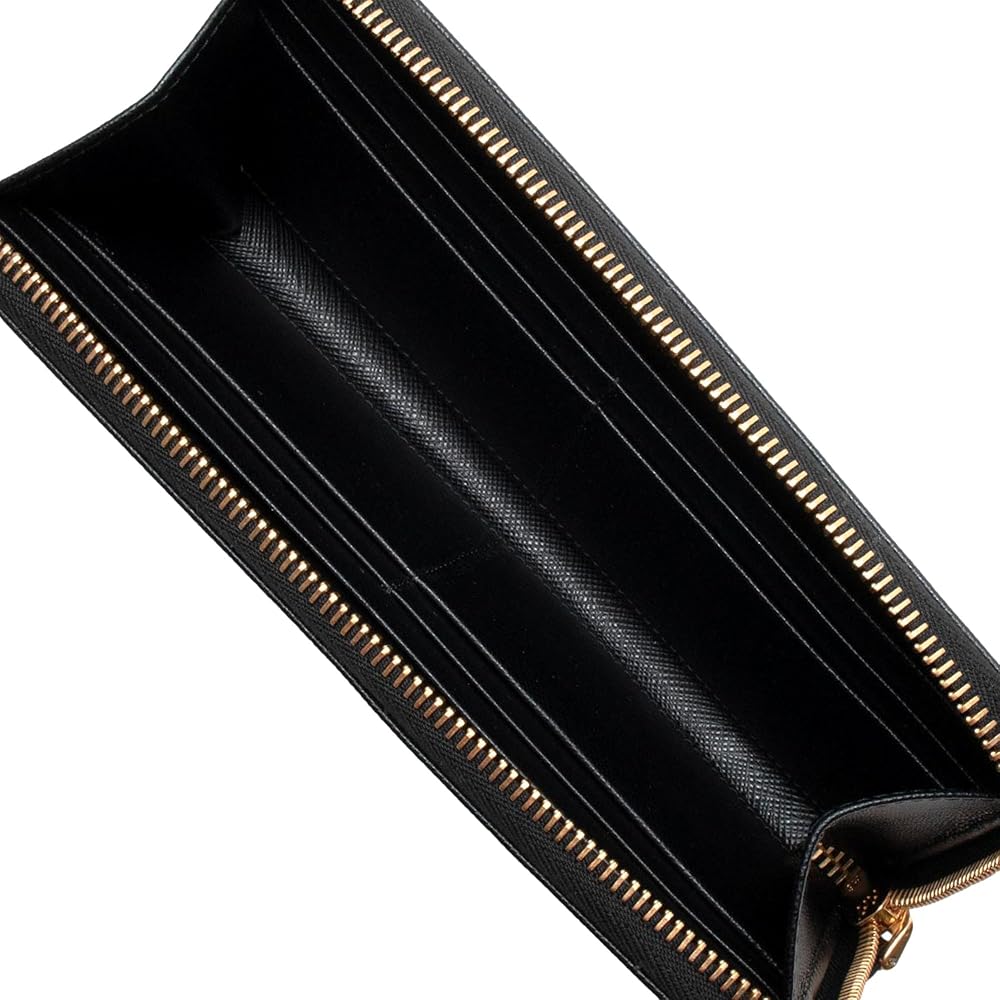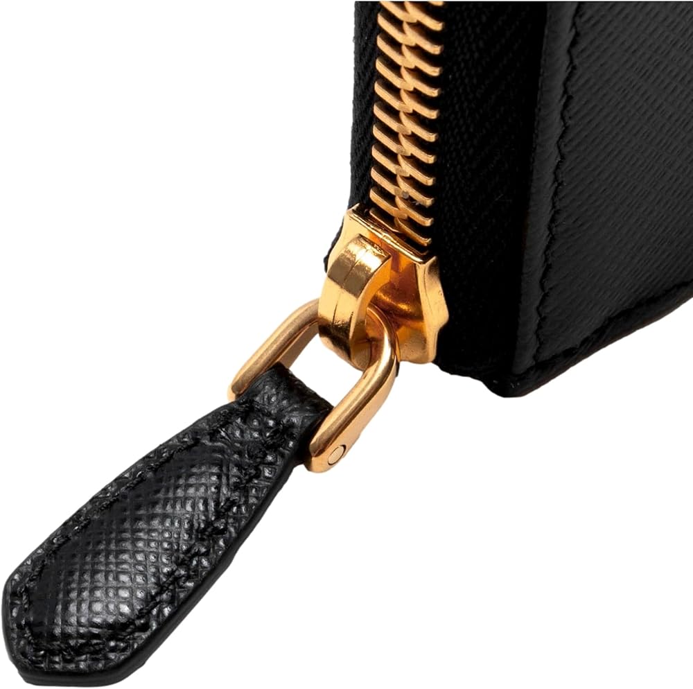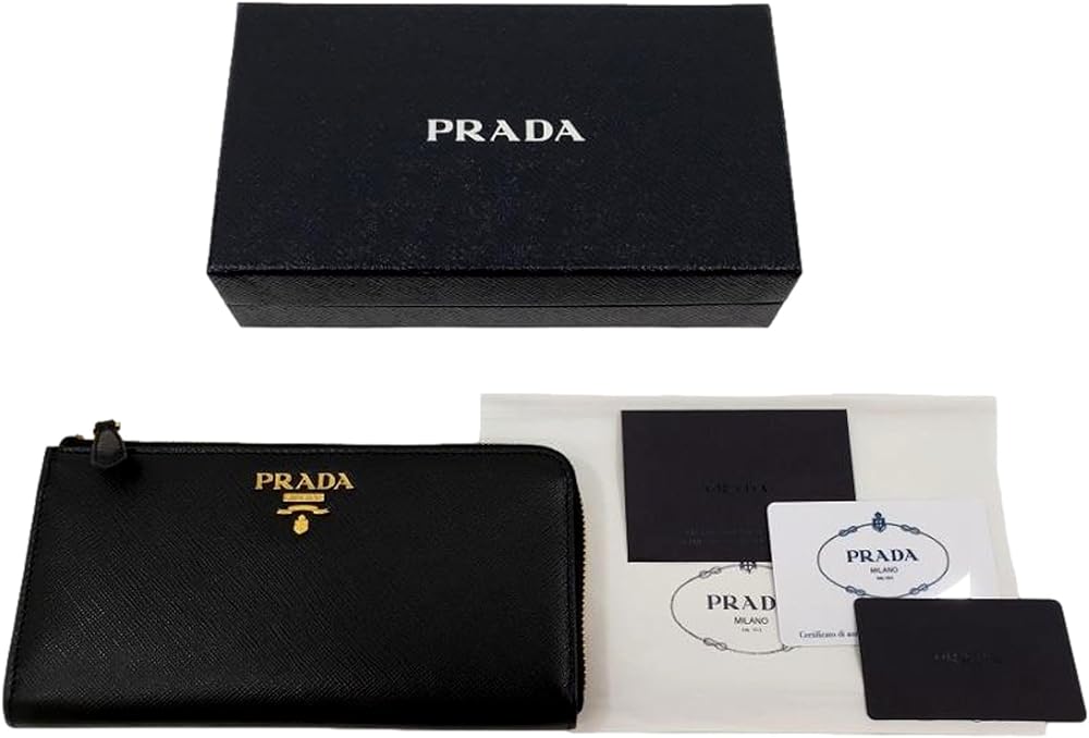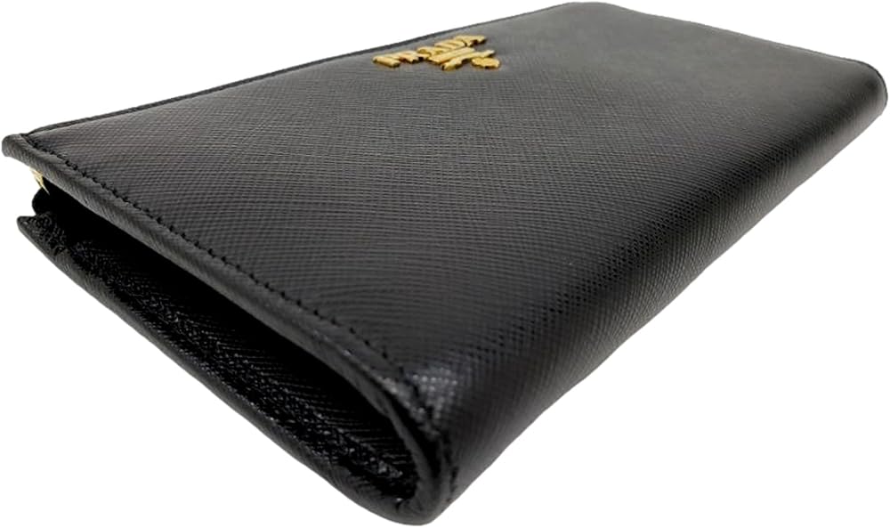 Elevate your style with this sleek and sophisticated Prada wallet. Crafted from premium black leather, this wallet exudes timeless elegance and unparalleled quality that Prada is renowned for. The minimalist design allows it to seamlessly complement any outfit, making it a versatile accessory for both formal and casual occasions. With ample space for your cards, cash, and receipts, this wallet offers practicality without compromising on style. Measures: 7.75" x 1 x 4" (LWH) Meticulously constructed with attention to detail, it's a luxurious investment piece that will serve you well for years to come. Whether you're a seasoned Prada enthusiast or seeking a timeless addition to your collection, this black Prada wallet is a must-have for those who appreciate the finer things in life.