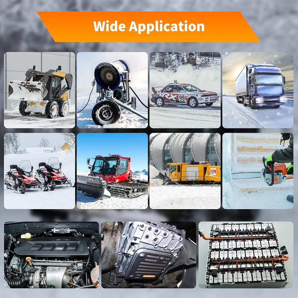 تطبيق واسع: مناسب للسيارات والشاحنات والجرارات ومنفاخ الثلج والمناشير وعربات الثلوج أو غيرها من المعدات. يمكن استخدامه على وعاء الزيت، وكتلة المحرك، وصينية البطارية، والمزيد