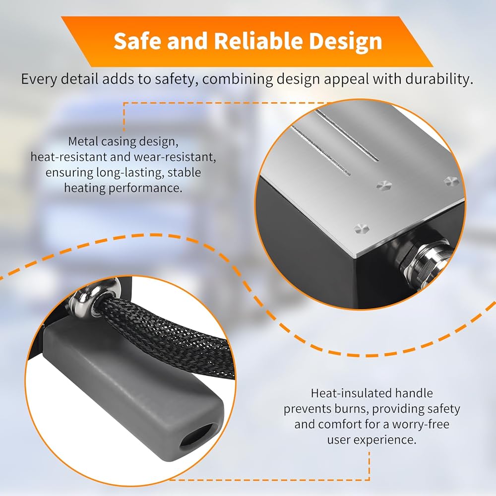 آمن وموثوق: يتميز بتصميم غلاف معدني قوي ومتين ومقاوم لدرجات الحرارة العالية، ويوفر أداء تسخين مستقر وطويل الأمد. المقبض المعزول يمنع الحروق الناتجة عن درجات الحرارة المرتفعة، مما يضمن الاستخدام الآمن