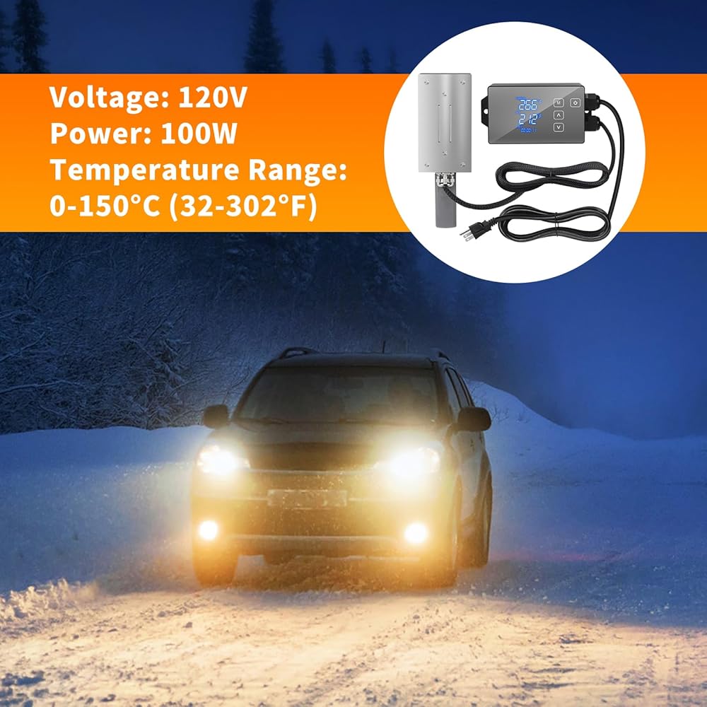 سخان كتلة المحرك المغناطيسي 120 فولت 100 وات مع وحدة تحكم ذكية في درجة الحرارة (32-302 درجة فهرنهايت قابلة للتعديل)، شاشة LCD لدرجة الحرارة والوقت في الوقت الحقيقي، مثالية للسيارات والشاحنات والجرارات وغيرها من المعدات