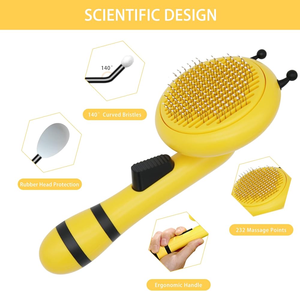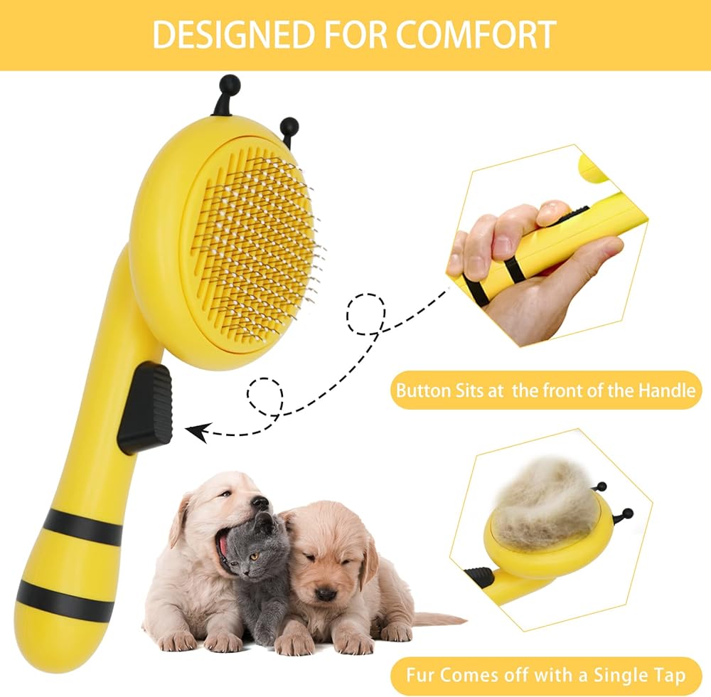 فرشاة FOGOBO Cute-Bee للتنظيف الذاتي للكلاب، فرشاة للقطط مع زر لتساقط الشعر، والفراء، ومشط لتصفيف الكلاب ذات الشعر الطويل والقصير، والقطط، والأرانب، وتزيل المعطف السفلي السائب بلطف