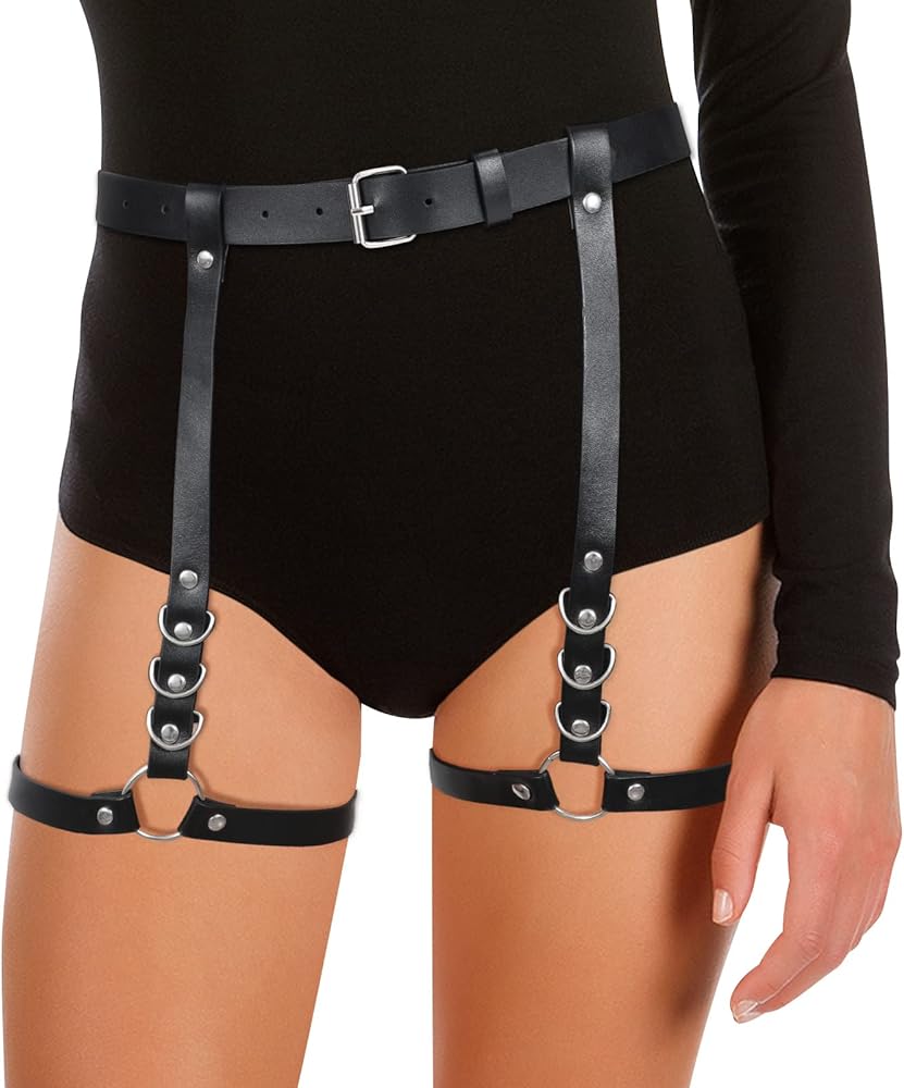 WERFORU Women Punk PU Leather Chain Belt Girls Gothic Rock Waist Belt with Leg Garters