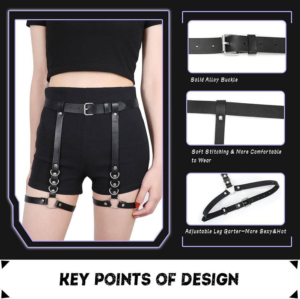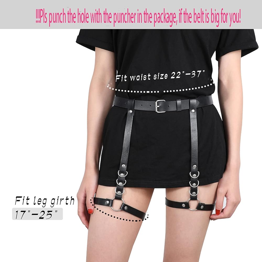 Adjustable Size:One size can be adjustable, the punk belt is suitable for waist 22"-37", and the leg garter is suitable for leg girth 17-25".