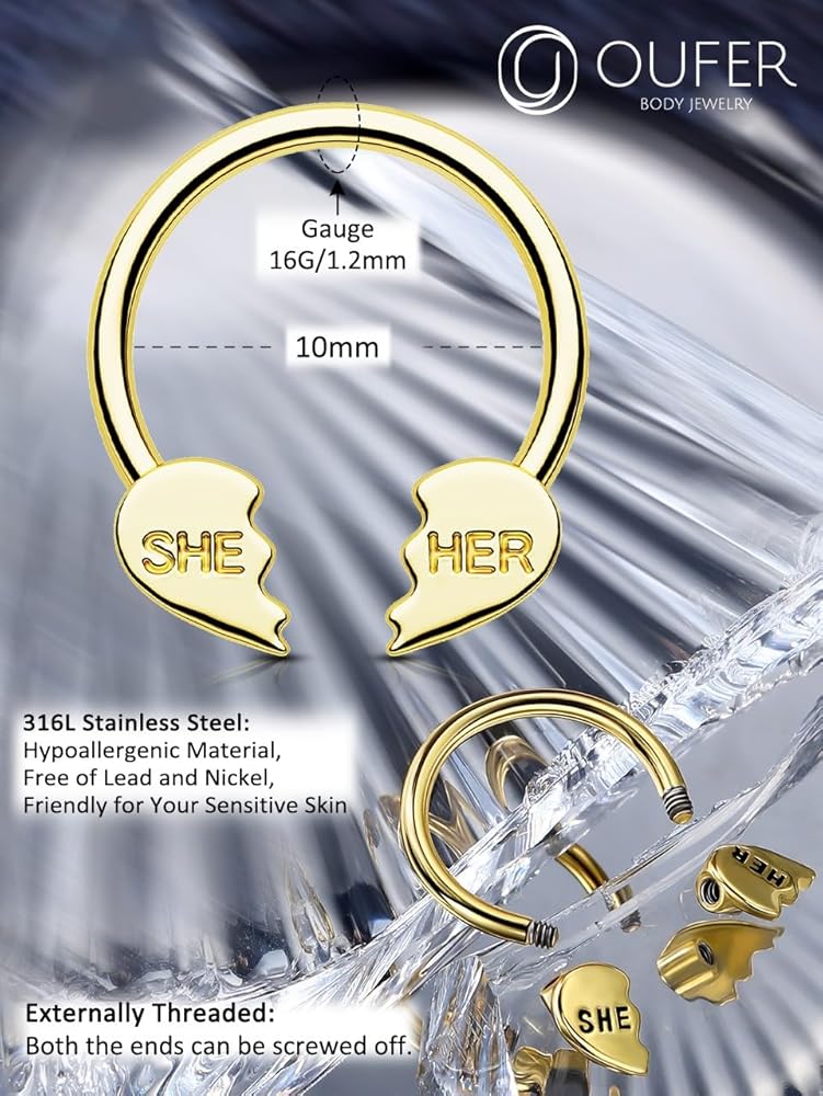 [مقياس مريح] حلقات الحاجز سُمك القضيب: 16 جم = 1.2 مم، القطر الداخلي: 10 مم. إنه يعمل بشكل جيد في العديد من الثقوب بما في ذلك المحار، والديث، والحلزون، والفص، والدفء، والحاجز.