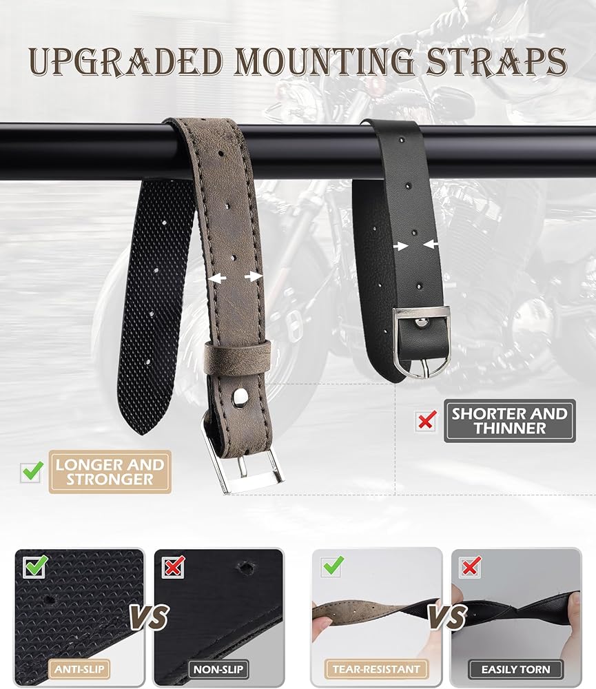 【أشرطة قوية وسهلة التركيب】تتميز حقائب السرج ذات الذراع المتأرجح للدراجة النارية من NICECNC بأشرطة تثبيت مطورة أطول وأكثر سمكًا وأكثر مقاومة للانزلاق من الأشرطة الأخرى، مما يضمن بقاء حقيبتك مثبتة بشكل آمن على الإطار بسرعات عالية، مما يجعل رحلتك أكثر أمانًا. إنه سهل التثبيت، ما عليك سوى اتباع التعليمات الواردة في صفحة التفاصيل. (تأتي العبوة مع مجموعتين من الأشرطة، مما يسمح لك بالاختيار حسب تفضيلاتك.)