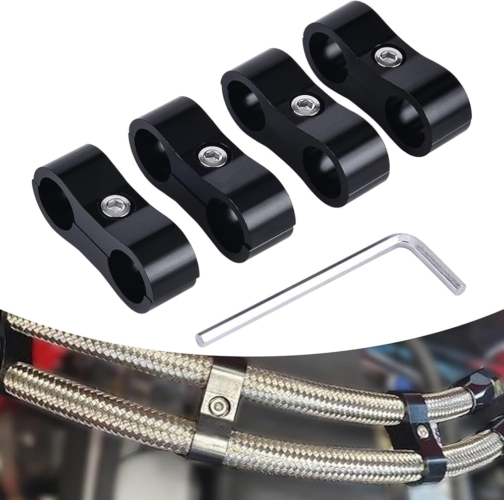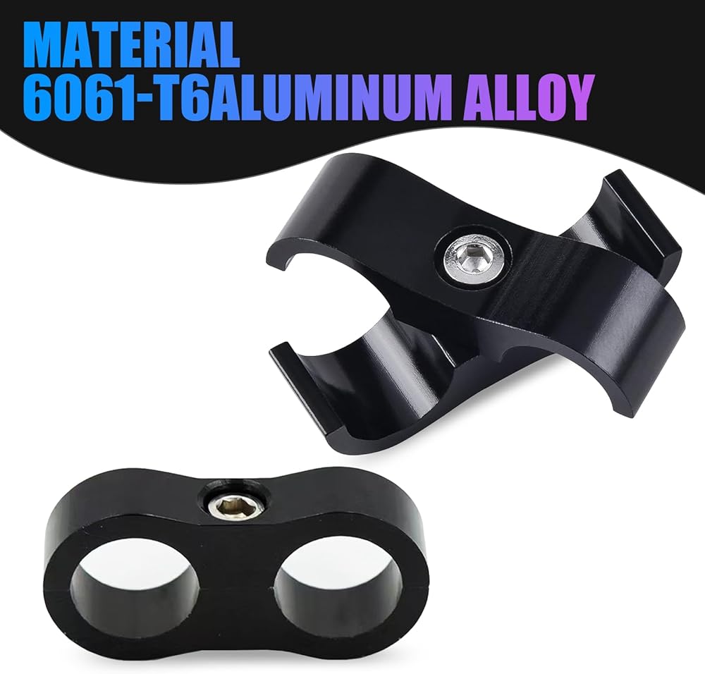 gunhunt 4 PCS Car Fuel Line Separator Clamps, Aluminum Alloy Fixed Pipe Tools, AN6 Hose Mounting Clamps, Double-hole Clamps with Screwdriver, Automotive Repair Kit, Universal for Most Cars (Black)