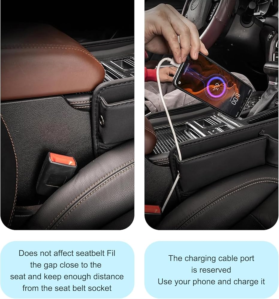 High Quality: The car seat gap organizer is made of premium leather, which has good texture and smooth feel, looking very luxurious. It can prevent small items from falling into the gap. With its sleek design and high-quality materials, it's the perfect addition to any car.