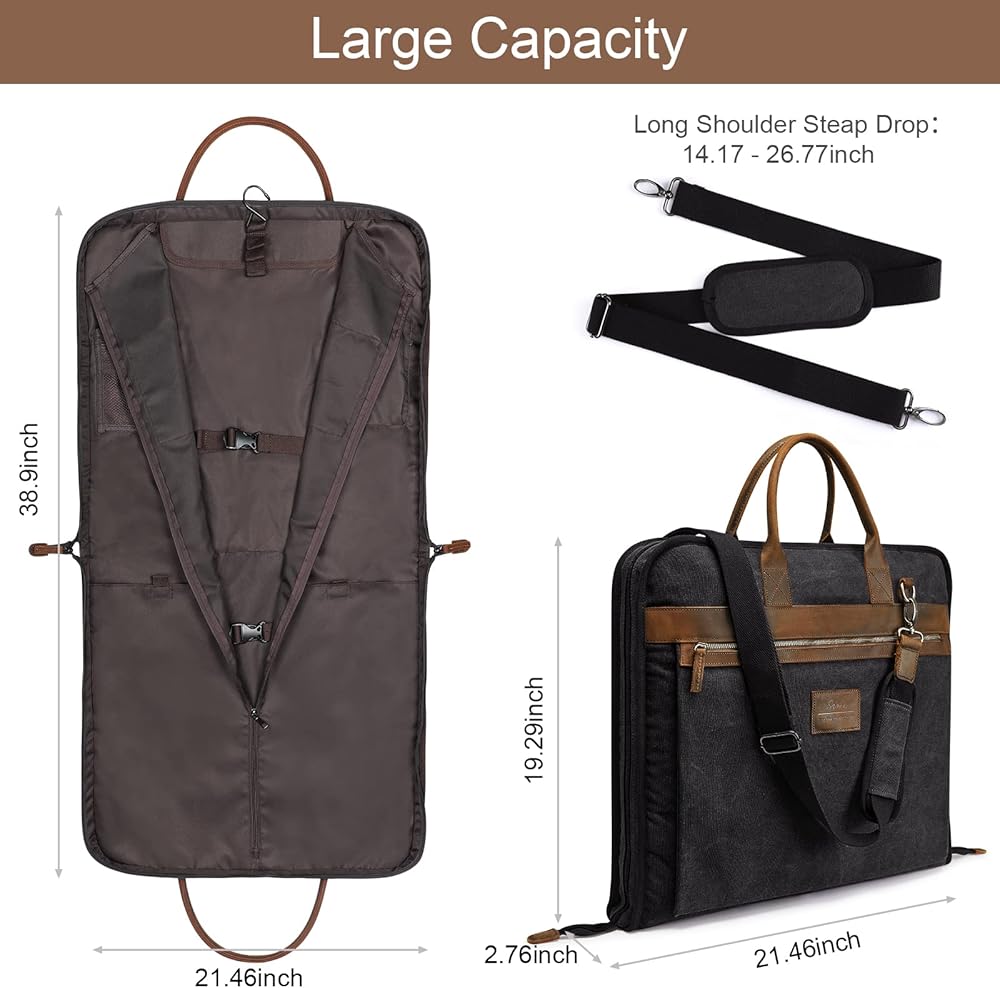 حقيبة الملابس لأبعاد السفر وحزام الكتف القابل للتعديل: الحجم المطوي: 21.5 بوصة طول × 2.76 بوصة عرض × 19.29 بوصة ارتفاع؛ الحجم غير القابل للطي: 21.5 بوصة طول × 38.97 بوصة ارتفاع؛ الوزن: 2.81 رطل؛ ارتفاع حزام الكتف القابل للتعديل والفصل: 14.17-26.77 بوصة. إنها تلبي متطلبات حجم المطار، لذلك يمكن أن تكون قطعة شخصية يمكنك أخذها على متن الطائرة