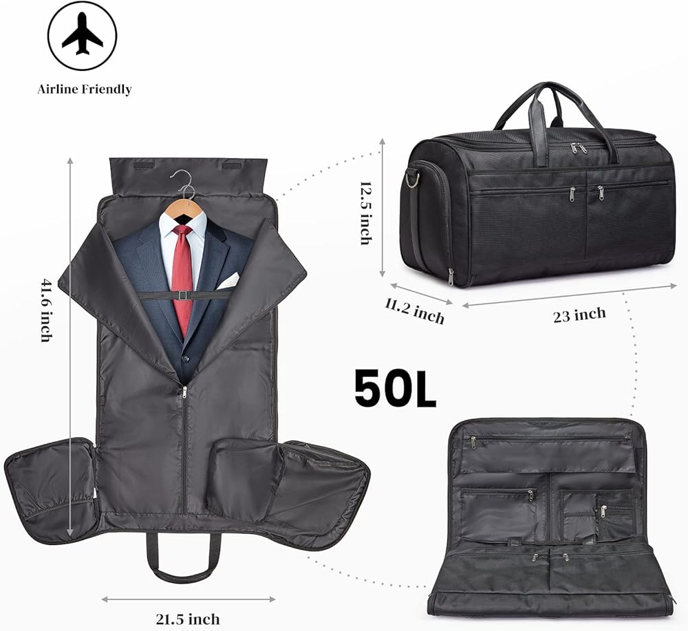 أبعاد حقيبة الملابس القابلة للتحويل: مقاس حقيبة السفر الخاصة بنا (طول) 23 × (عرض) 11.2 × (ارتفاع) 12.5 بوصة، الحجم الموسع 41.6 × 21.5 بوصة. الوزن: 4.13 جنيه. الحجم المثالي لحقيبة البدلة يناسب متطلبات شركات الطيران، ويمكنك وضعها على الصندوق العلوي أو تحت المقعد