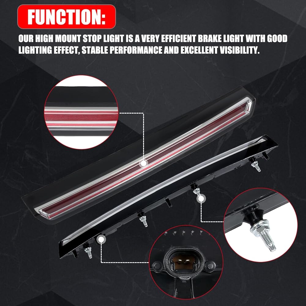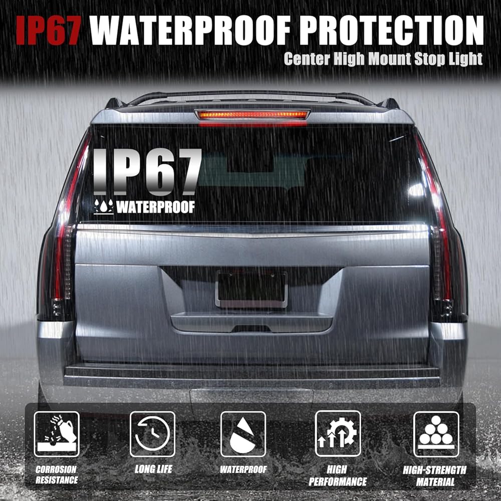 الميزة: نحن نعتمد مواد عالية الجودة لصنع منتجنا، مصنوع من مادة بلاستيكية ABS عالية الجودة للسيارات، مما يضمن أن ضوء الفرامل مقاوم للتأثيرات الطفيفة ومتين. ضوء الفرامل الخاص بنا مغلق بإحكام لمنع المطر أو الثلج أو الرمل من الدخول إلى الداخل وإتلاف الأضواء. إنه يتميز بوظائف مقاومة للماء والغبار والصدمات والصدمات والتآكل، مما يجعله متينًا ومتينًا. إنه يوفر ميزة متينة وموثوقة في ظل الظروف القاسية.