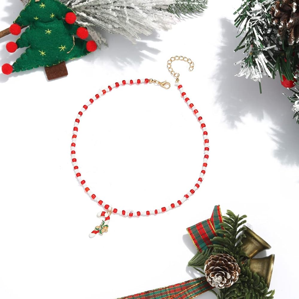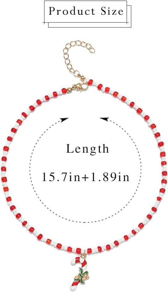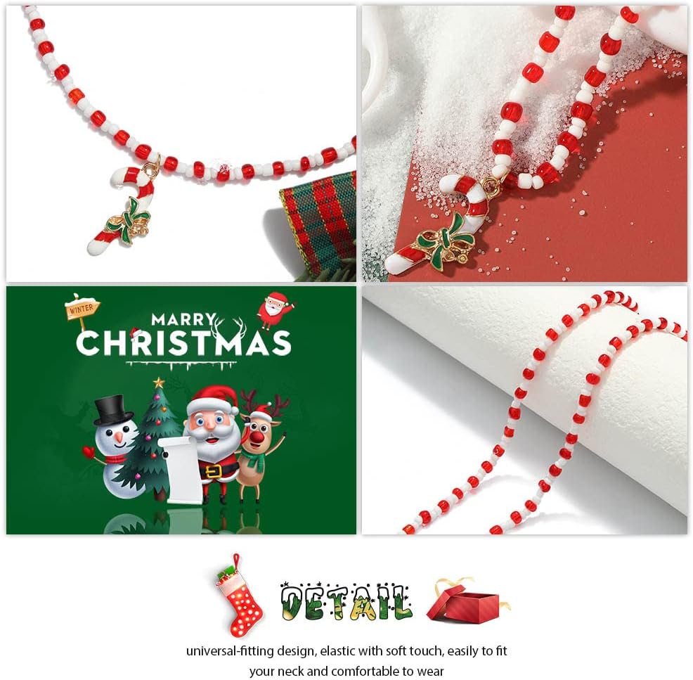 Sixexey عيد الميلاد حلوى قصب قلادة مطرز القلائد سلاسل عيد الميلاد قلادة قلادة اكسسوارات للنساء