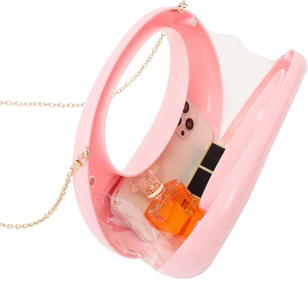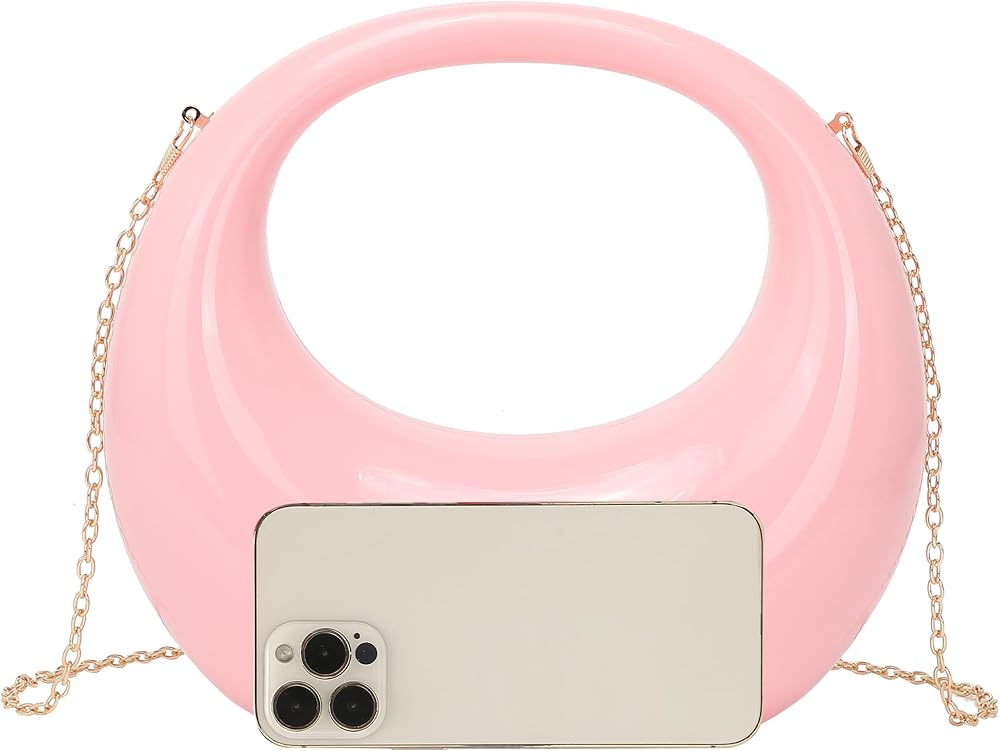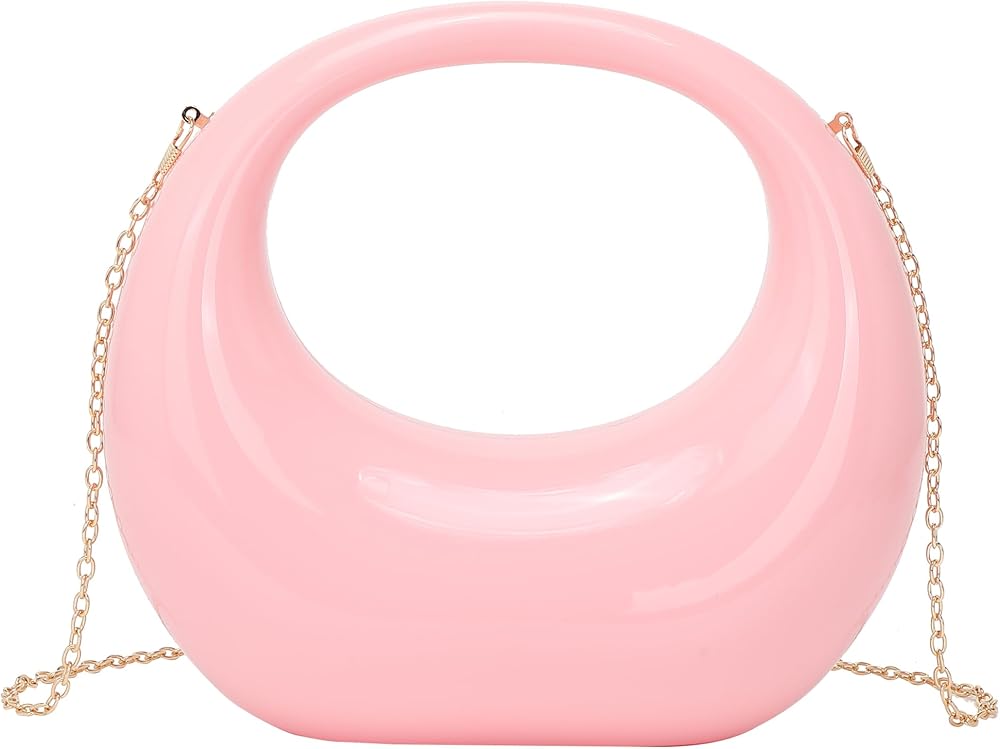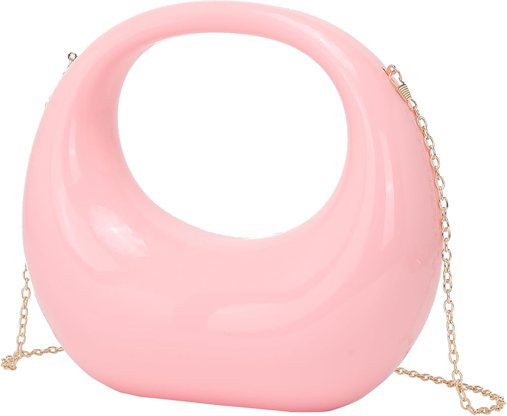 تصميم فريد: حقيبة اليد المسائية المصنوعة من الأكريليك بتصميم على شكل هلال تقدم ملمسًا معدنيًا متدفقًا مذهلاً وأنيقًا وبسيطًا.