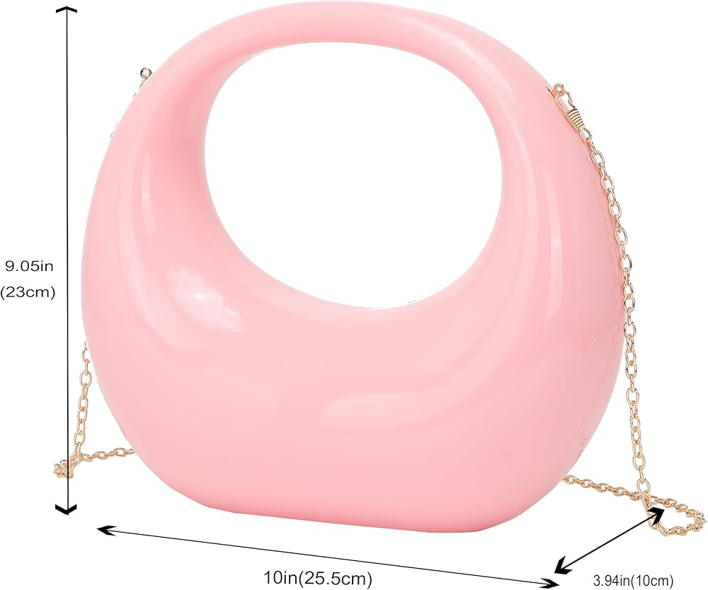 السعة: الحجم 10.6 × 4.3 × 10.2 بوصة (الطول * العرض * الارتفاع)، وهذه الحقيبة على شكل شهر مناسبة للحمل. يمكنها حمل الهواتف والمفاتيح وأحمر الشفاه وبطاقات الائتمان والمرايا الصغيرة ومستحضرات التجميل والمزيد.