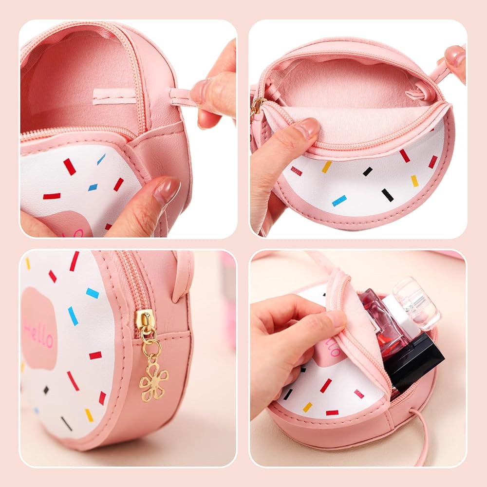 These cute purse for girls is designed in the shape of donut, lovely and novelty, easy to attract children's attention and make them the center of attention wherever they go.
