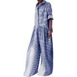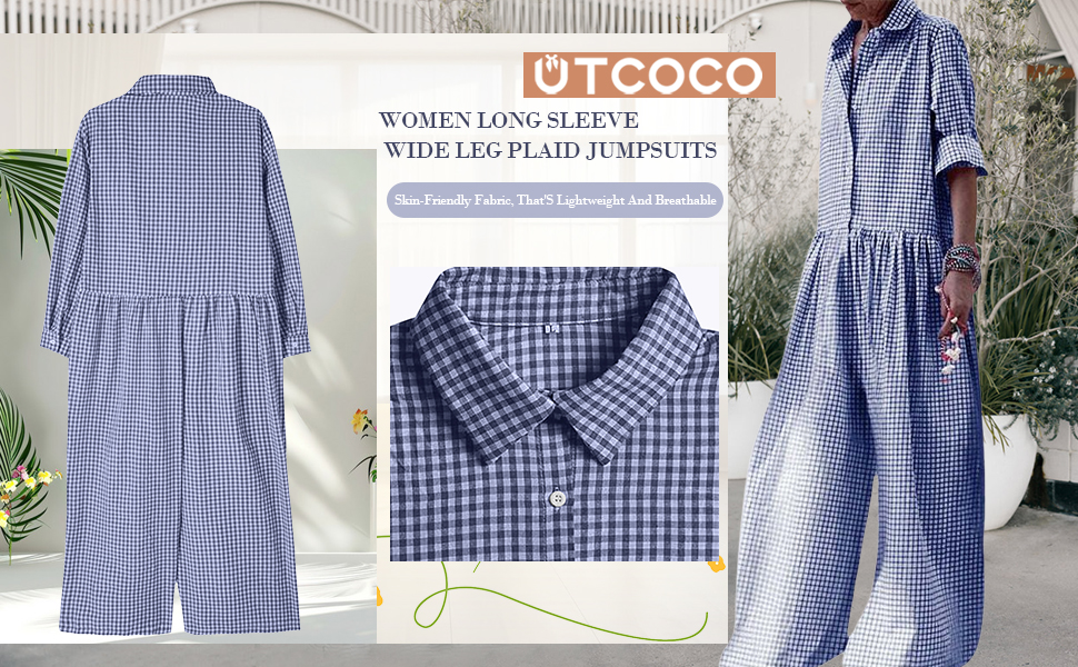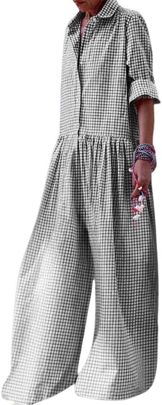 Utcoco Women Long Long Leg Leg Plaid Bleaid Plextuits غير الرسمي لزر ملاءمة أعلى قطعة واحدة من السراويل الطويلة