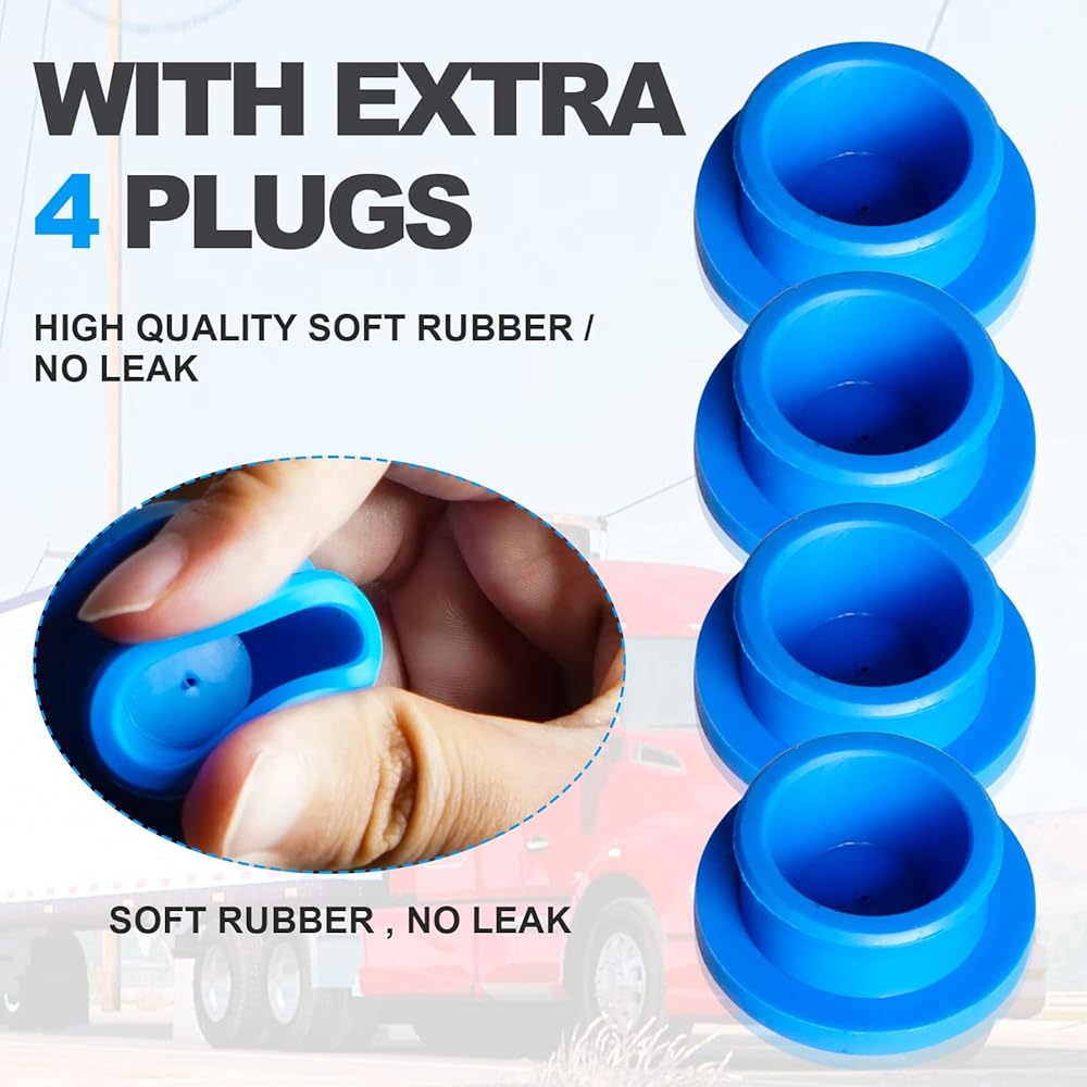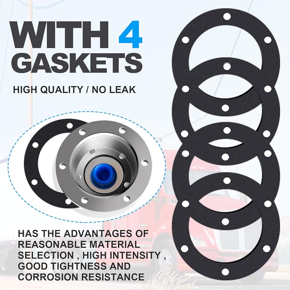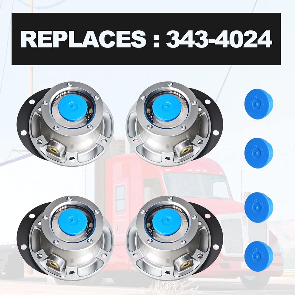 غطاء محور ألومنيوم 6 فتحات لمقطورة أكسل، مع حشوات سدادات الأنابيب الجانبية و4 سدادات مطاطية زرقاء إضافية، تحل محل Stemco 343-4024، مجموعة من 4
