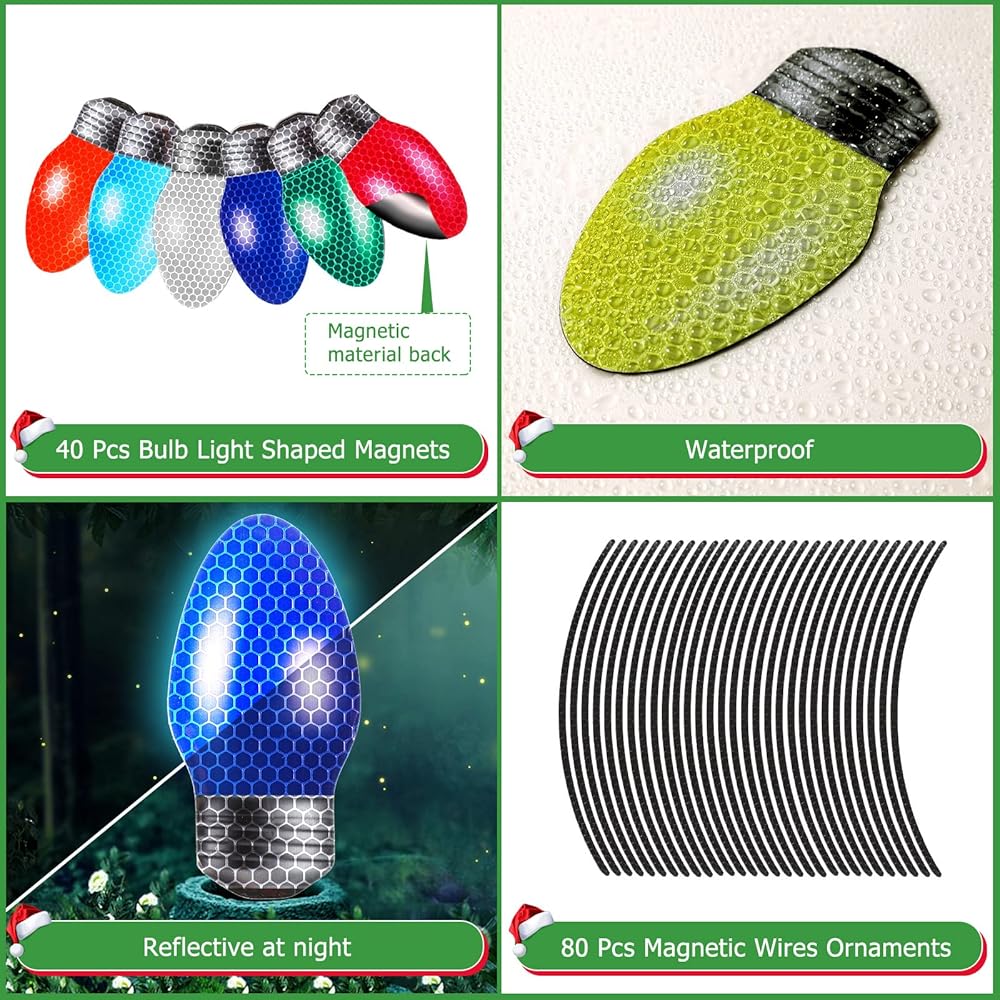 مجموعة زينة عيد الميلاد: سوف تحصل على 40 قطعة من مغناطيس عيد الميلاد للسيارة، متوفرة باللون الأحمر والوردي والأبيض والبرتقالي والأصفر والأخضر والمزيد؛ بالإضافة إلى ذلك، هناك 80 قطعة من الأسلاك المغناطيسية، كافية لتلبية احتياجات الديكور الخاصة بك في عيد الميلاد