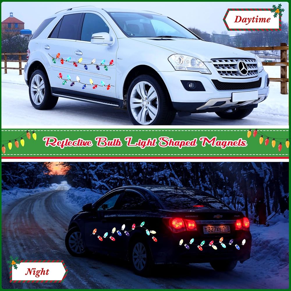 الحجم المناسب للتزيين: مصمم بمقاس تقريبي. 5 × 10 سم/ 2 × 3.9 بوصة، يمكن لمغناطيس سيارة عيد الميلاد أن يجذب انتباه الناس من النظرة الأولى؛ ملصقات الأسلاك المغناطيسية تقريبًا. 20 × 0.45 سم/ 7.9 × 0.2 بوصة، والتي يمكن أن تتوافق بشكل جيد مع مغناطيس المصباح