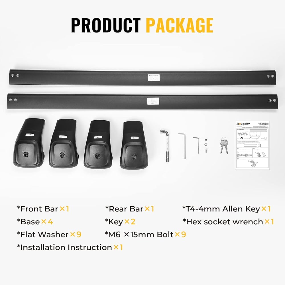 دعم فني بدون متاعب لمدة 12 شهرًا: تأتي القضبان المتقاطعة لرف السقف BougeRV مع دعم فني لمدة 12 شهرًا. إذا كان لديك أي أسئلة، يرجى الاتصال بنا.