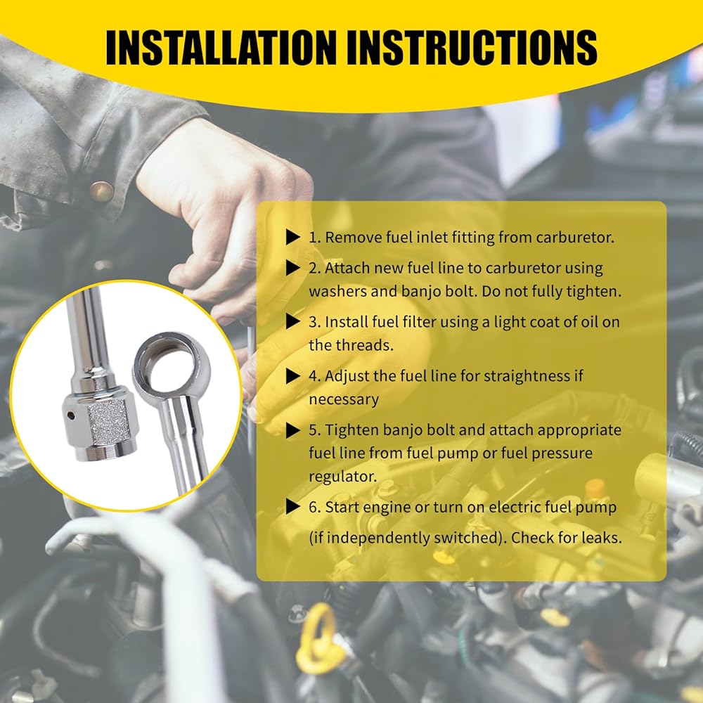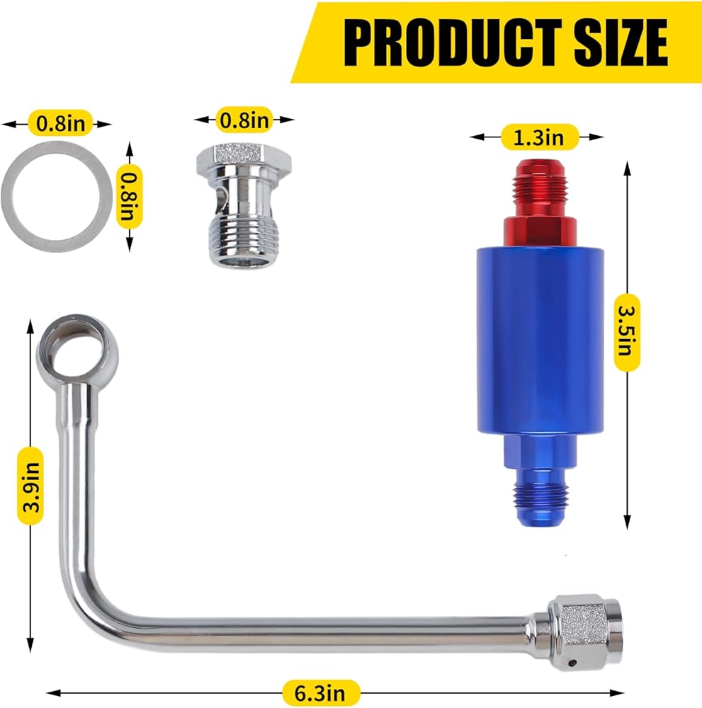 مجموعة أنابيب زيت التغذية المفردة، كاملة مع الملحقات وسهلة التركيب، مما يوفر حلولاً لخطوط أنابيب نظيفة ومخصصة. ملاحظة: في حالة وجود تسرب، قم بإيقاف تشغيل المحرك (أو مضخة الوقود الكهربائية) على الفور وقم بإصلاح التسرب قبل المتابعة!