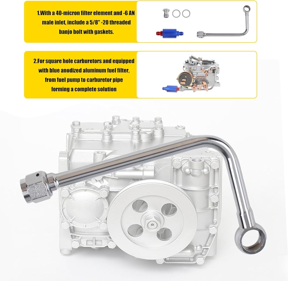 للمكربنات ذات الفتحات المربعة والمزودة بفلتر وقود من الألومنيوم المصقول، من مضخة الوقود إلى أنبوب المكربن مما يشكل حلاً كاملاً، مناسب لسلسلة ثاندر أو سلسلة المكربنات من سلسلة بيرفورمير، مما يضيف لمسة أنيقة إلى حجرة المحرك.