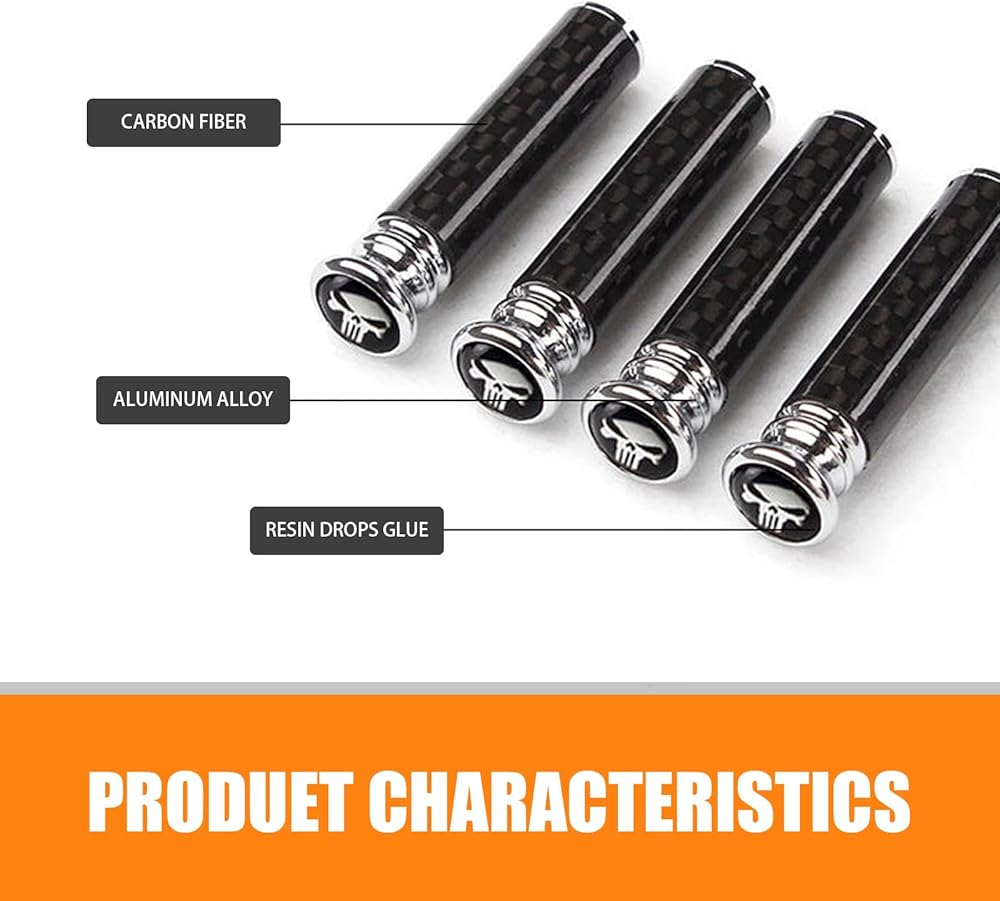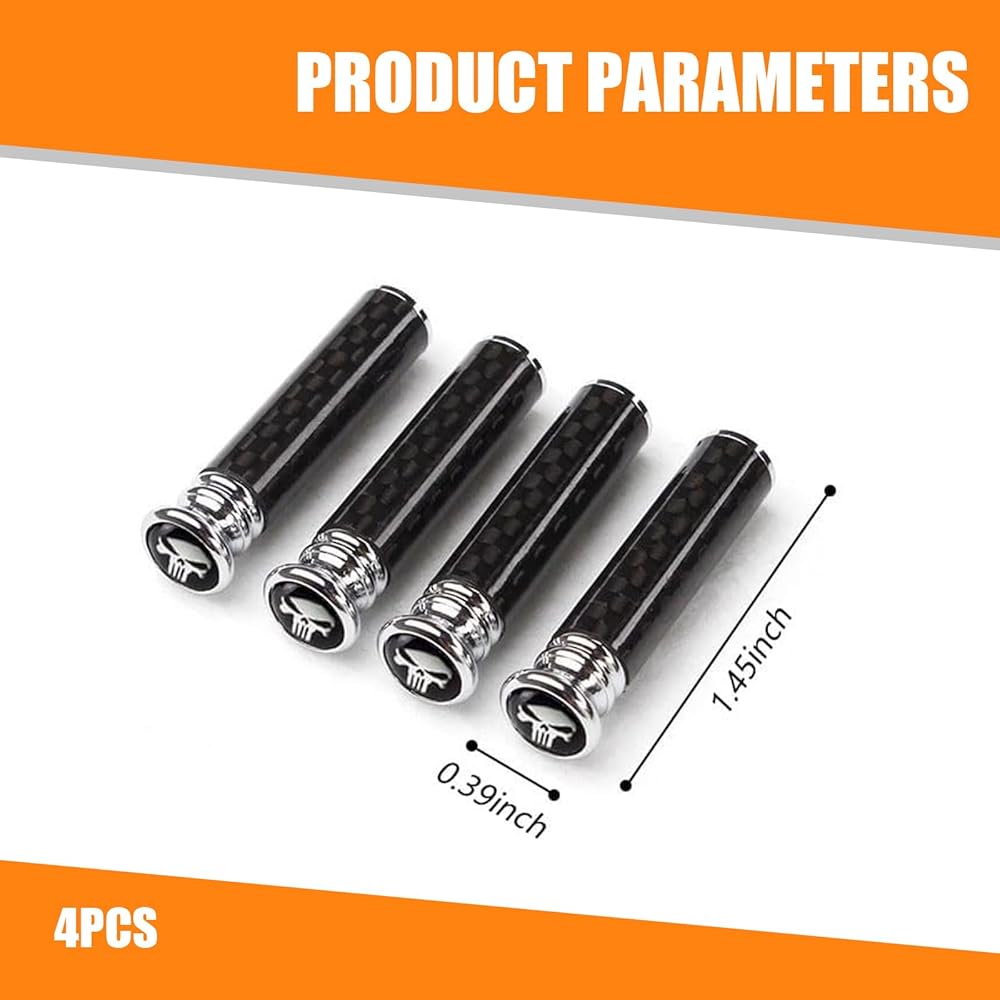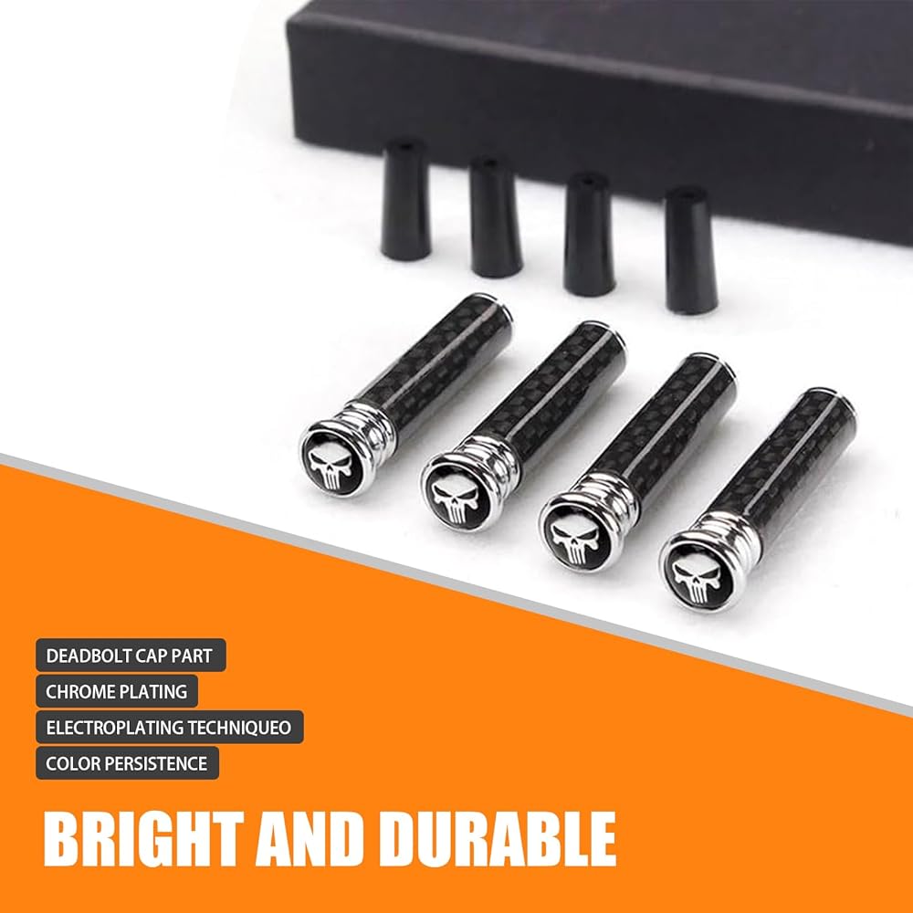 4 قطع من دبوس مسمار قفل باب السيارة، تصميم جمجمة، غطاء مسمار متين من ألياف الكربون مقاوم للماء، استبدال مسمار قفل باب السيارة العالمي السلس لمعظم السيارات (أسود)