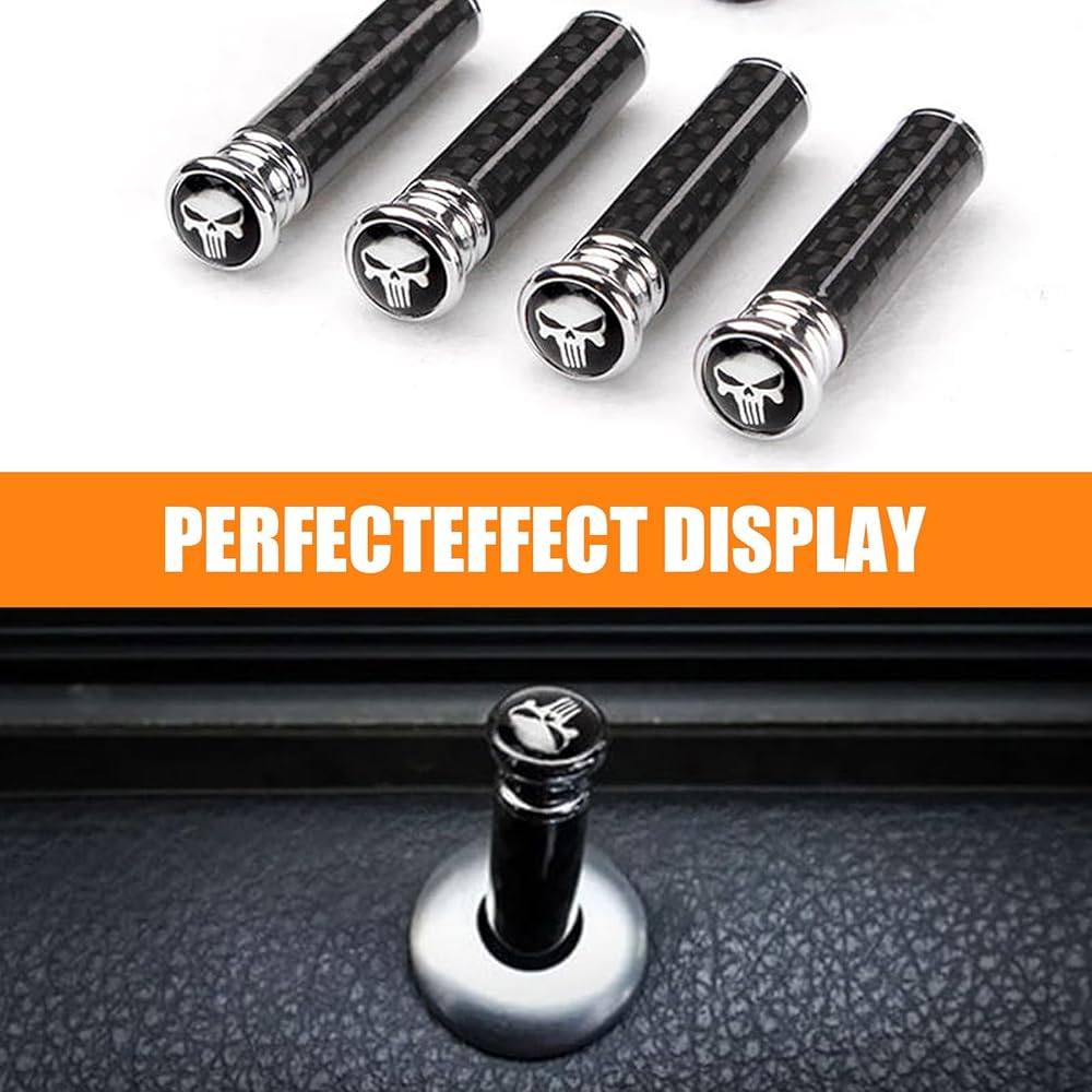 Gseigvee 4 Pack Car Door Lock Bolt Pin, Skull Design, Carbon Fiber Waterproof Durable Vehicle Knob Bolt Cover, Universal Smooth Automotive Door Lock Bolt Replacement for Most Cars (Black)