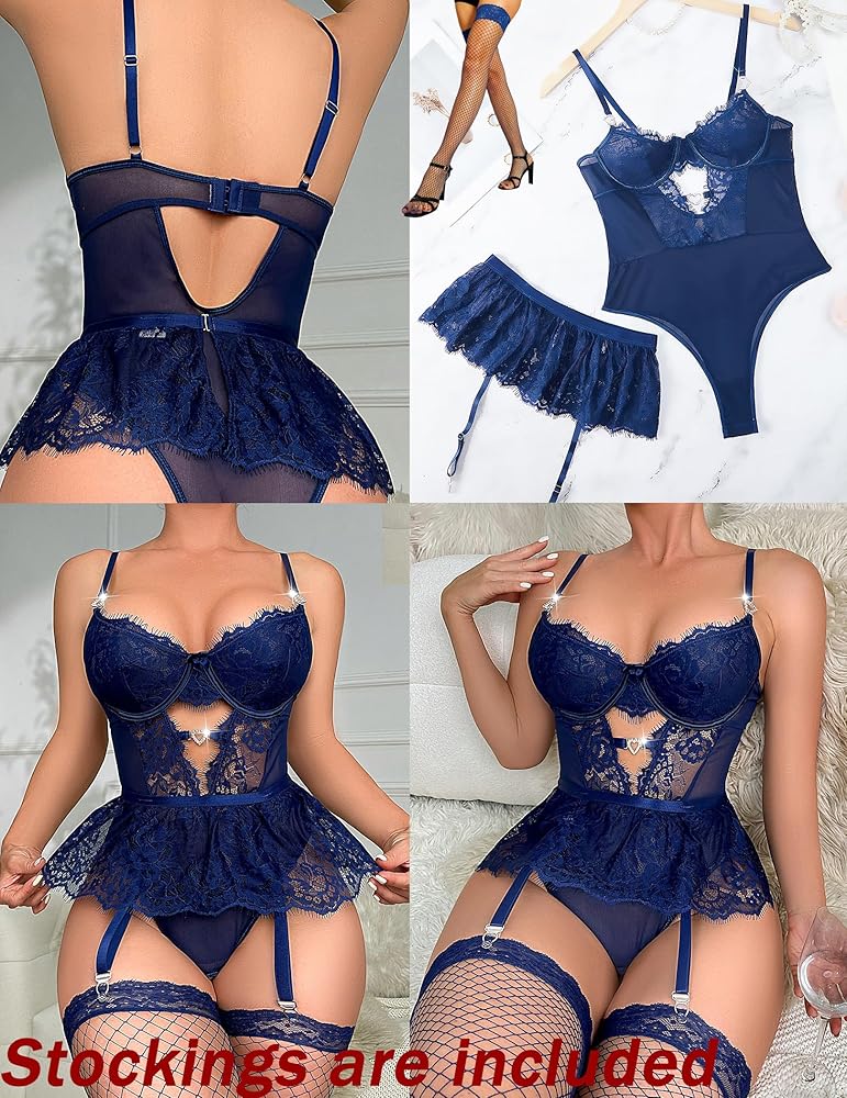 ملابس داخلية Naughty Garter للنساء من الدانتيل الزهري