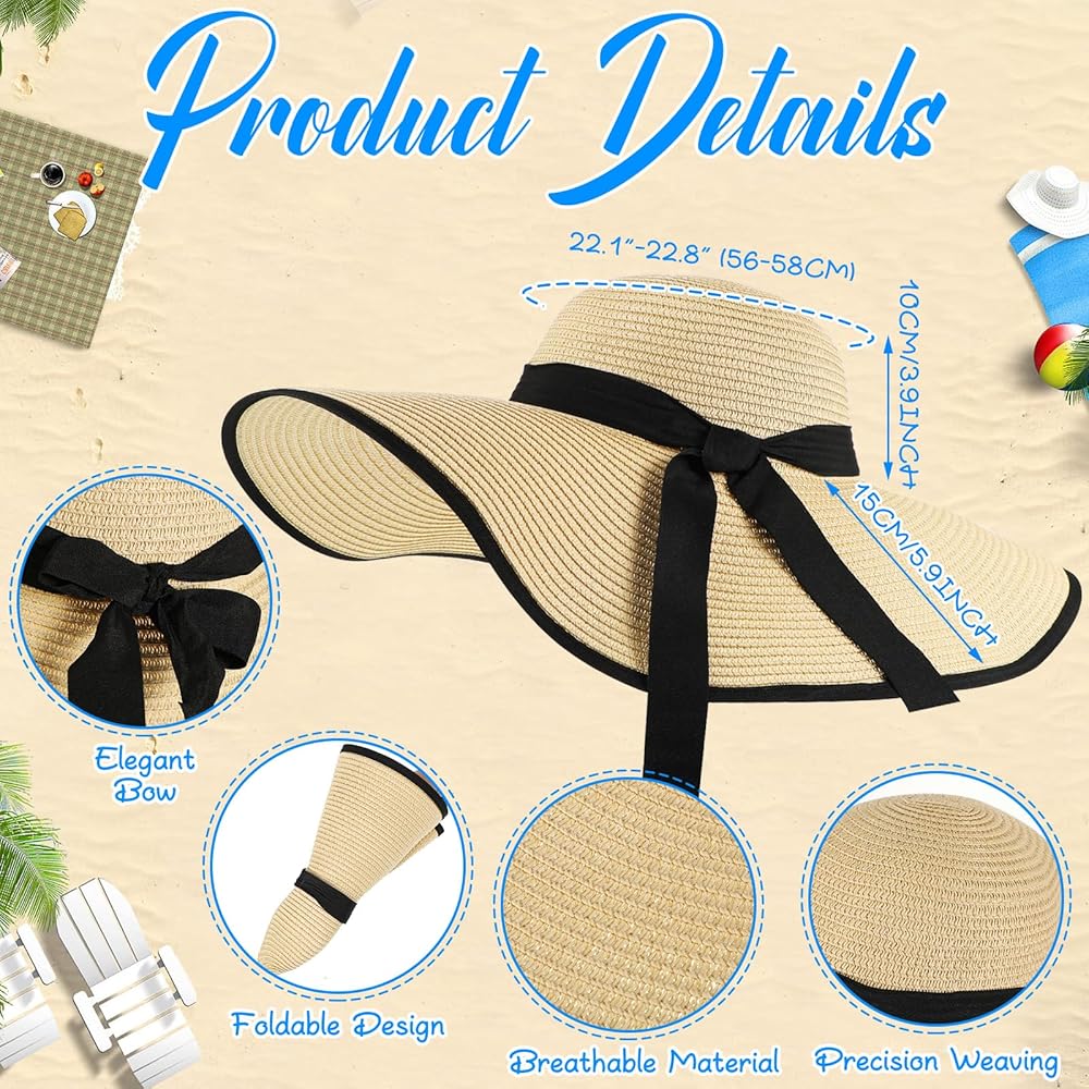 Space Saving and Convenient Design: the large summer floppy foldable beach hats can be folded up or down into various styles, which can be stored in your backpack or suitcase when travelling; The big straw hat's foldable design makes it easy to carry and store; It won't take up much space in your luggage or closet