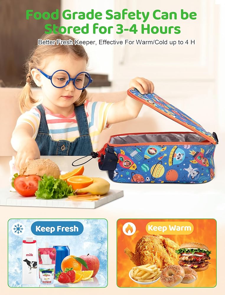 الحفاظ على الطعام لفترة طويلة: صندوق الغداء اللطيف هذا الذي يحافظ على الطعام طازجًا مناسب جدًا للأطفال. يمكن أن تبقى حقيبة غداء الأطفال هذه طازجة لمدة 3-4 ساعات، وتصل إلى 5-6 ساعات مع وجود كيس الثلج بداخلها