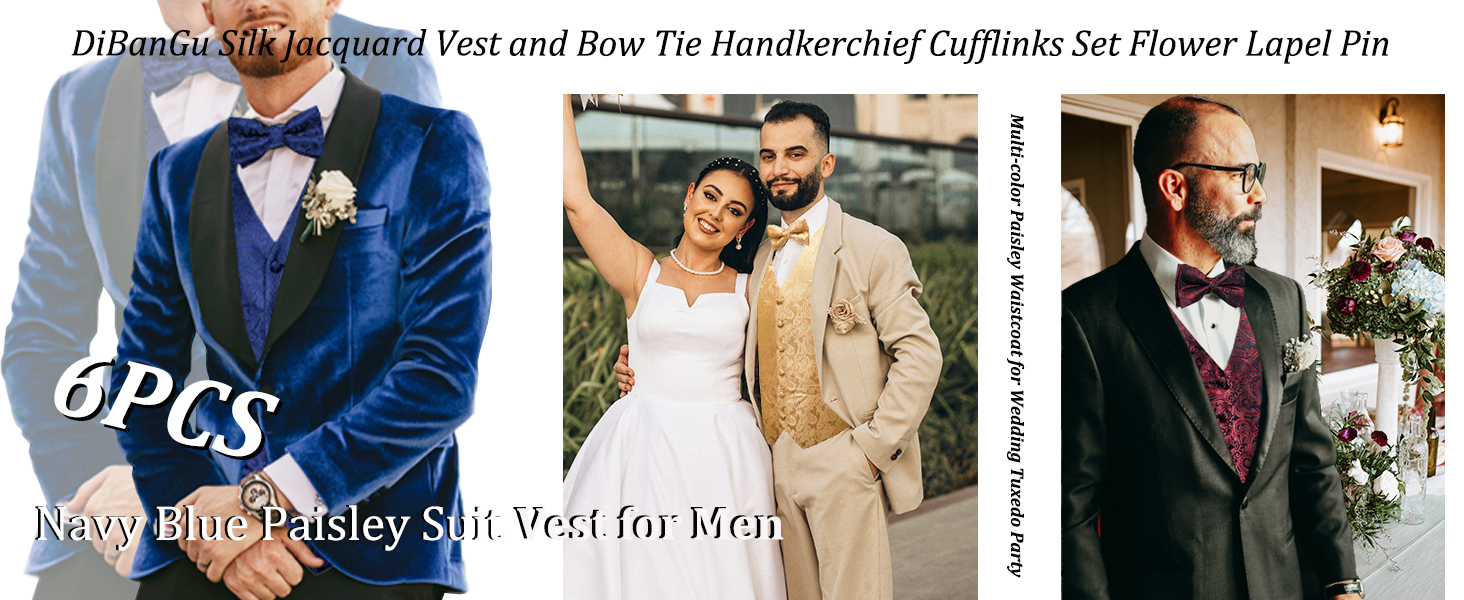 【المادة والحرفية】مجموعة سترة السهرة وربطة العنق مصنوعة من الحرير. نسيج عالي الكثافة 2000 غرزة يجعل طقم السترة أكثر عملية ومقاومة للاهتراء. غير مشوه، لا يوجد حبب، لا يبهت. خياطة ممتازة وحرفية منسوجة من الجاكار، سوف تعطيك تجربة ارتداء أكثر راحة