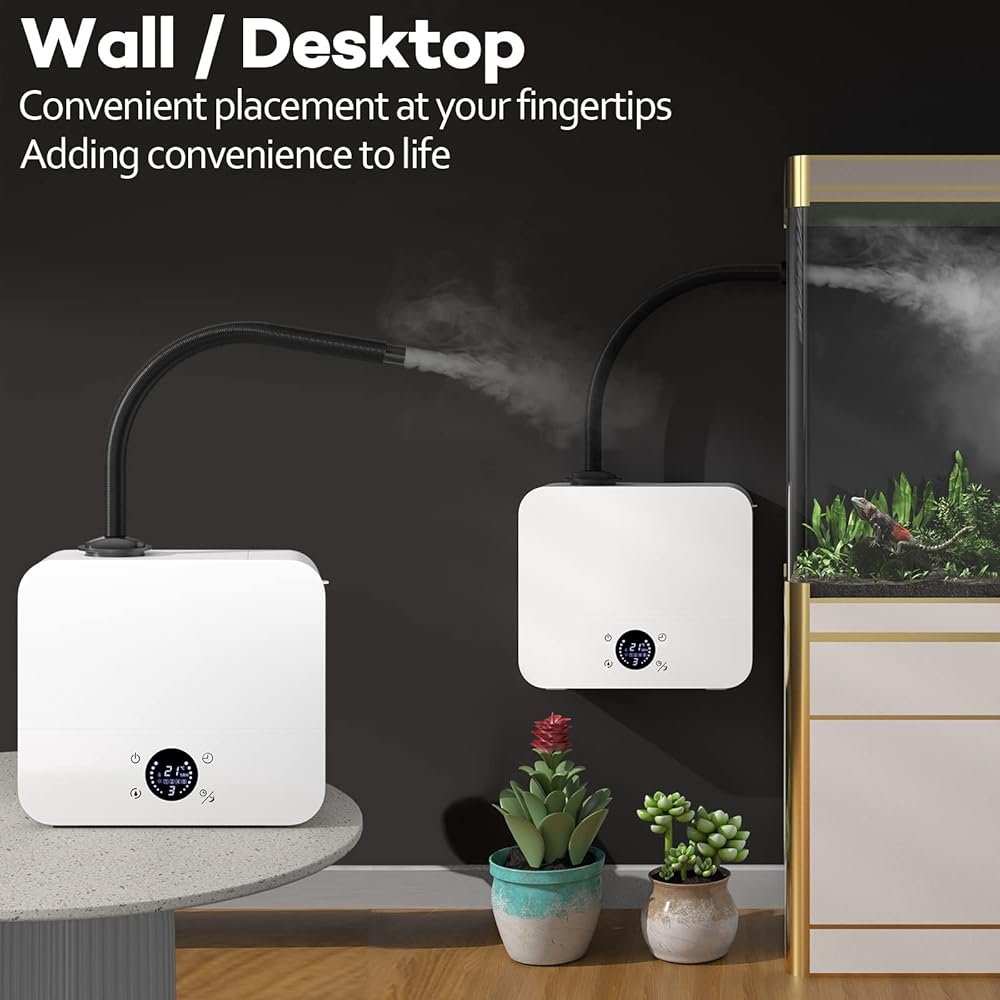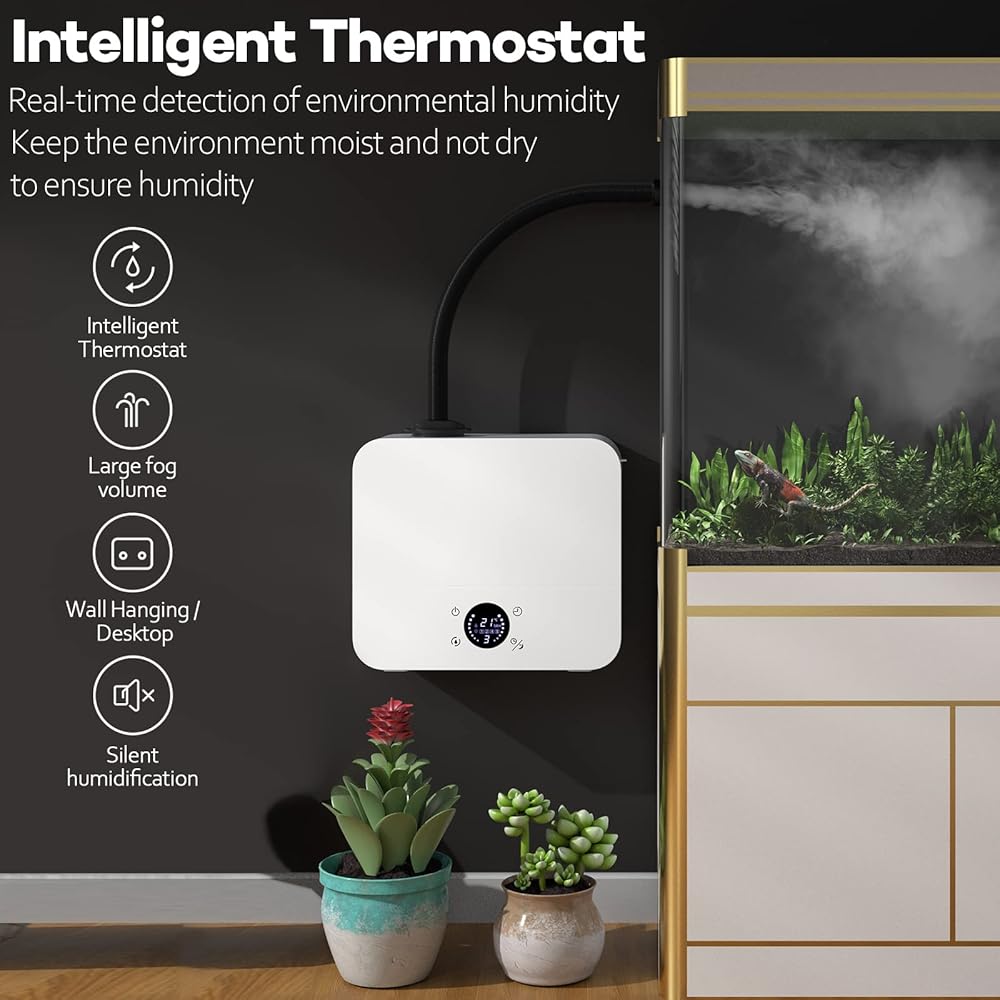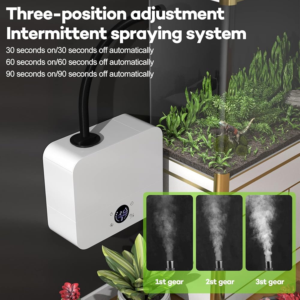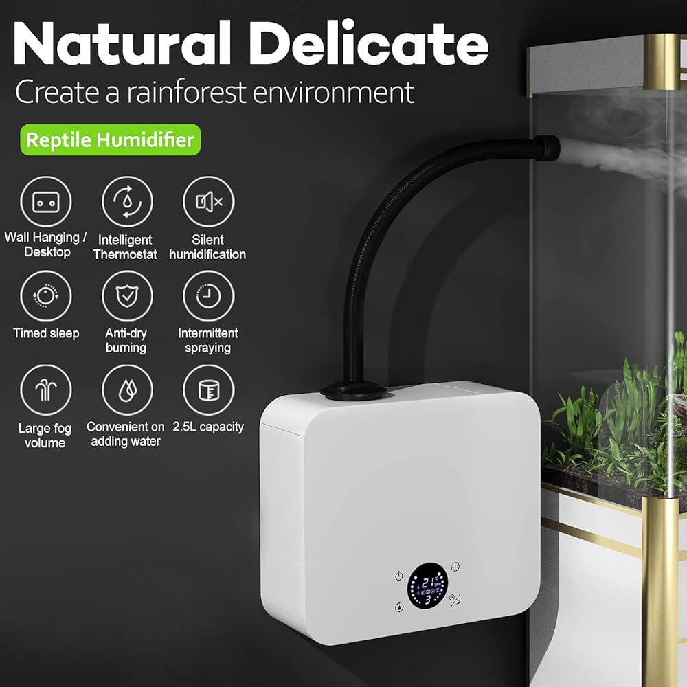 مرطب ضباب 2 في 1 للزواحف مع مؤقت ومفاصل رش 2.5 لتر، خزان تعبئة علوي للمنزل والحيوانات الاليفة، يثبت على الحائط/سطح المكتب، مناسب للزواحف والبرمائيات والنباتات الخضراء