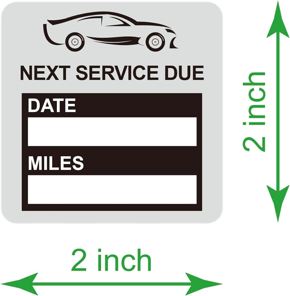 "Next service due" is a reminder that annual calibration and preventive maintenance is due. Clear This Next Service Due Sticker is made of a durable and clear static cling plastic. After a vehicle has been serviced, place this sticker on the window. You will then be able to fill in the suggested date or mileage for when the next service will be due. Label size: 2x2 inch.