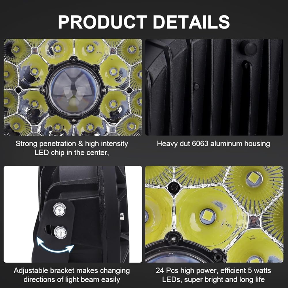 استخدام واسع: تأتي مع الملحقات الضرورية لسهولة التركيب، الأضواء تناسب أنواع مختلفة من الطرق الوعرة، شديدة التحمل، سيارات الدفع الرباعي، ATV، UTV، الشاحنة، السيارة، القارب إلخ.