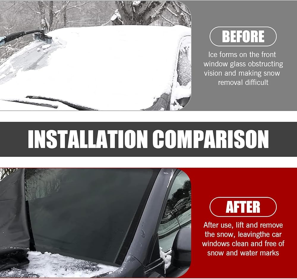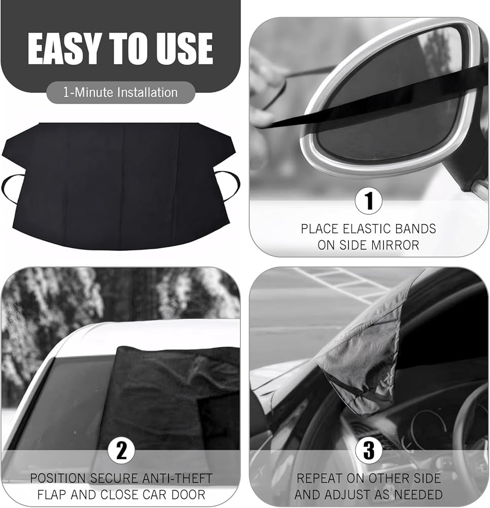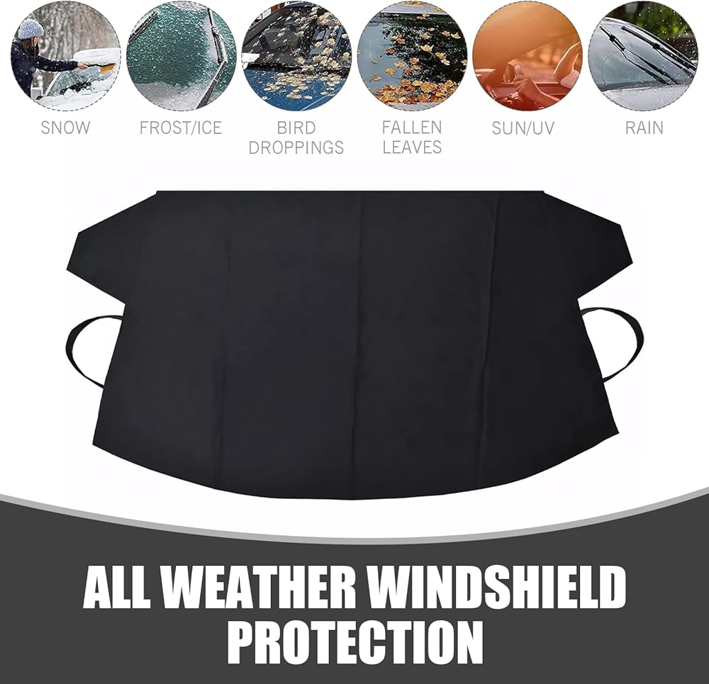 • All-weather Coverage: This windshield cover can be used in all seasons. It can effectively resist rain, sunlight, autumn leaves, snow piles, frost, dust, etc. falling on the windshield, providing good protection for your car.