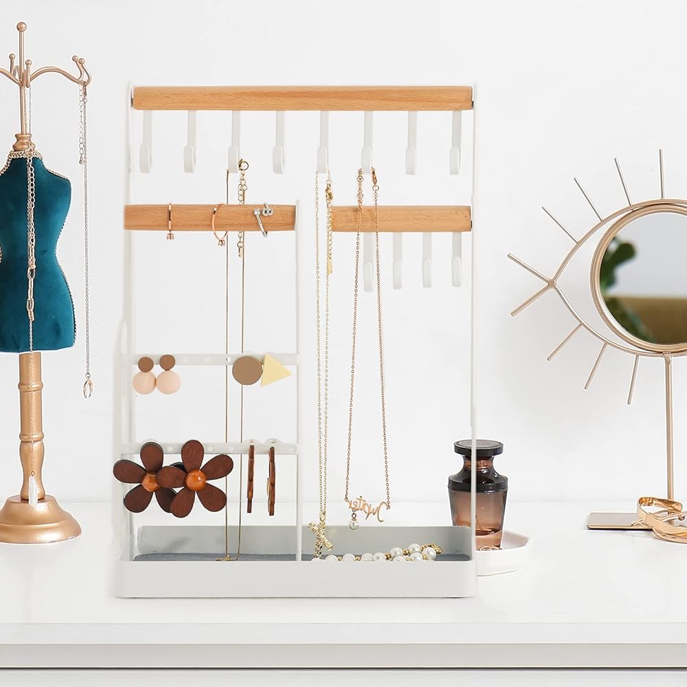 أنيق ومتين - مصنوع من الخشب عالي الجودة، منظم المجوهرات هذا ليس متينًا فحسب، بل يضيف أيضًا لمسة من الأناقة إلى غرفتك بلونه الأبيض وجمال الفانيليا. تصميم الترقية يجعل من السهل التجميع ويضمن الاستقرار. إنه صندوق منظم مجوهرات عملي وجذاب بصريًا، مثالي لعشاق المجوهرات من جميع الأعمار.