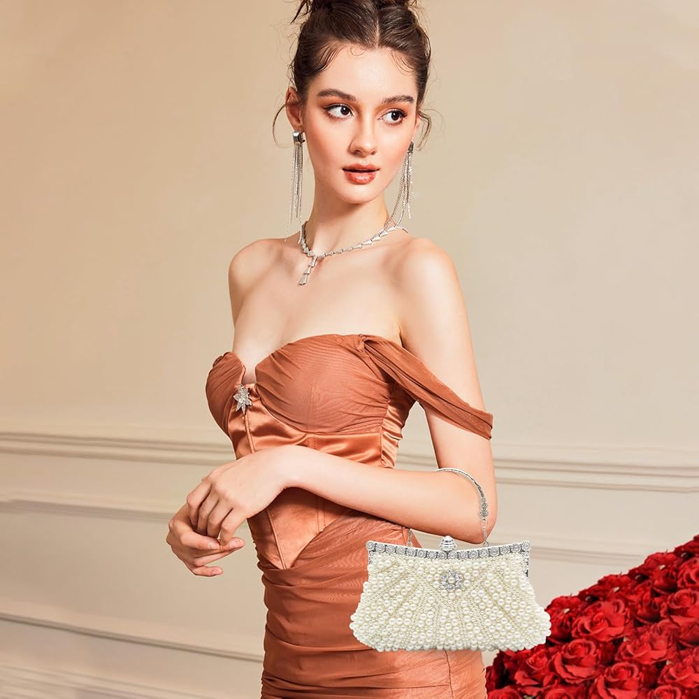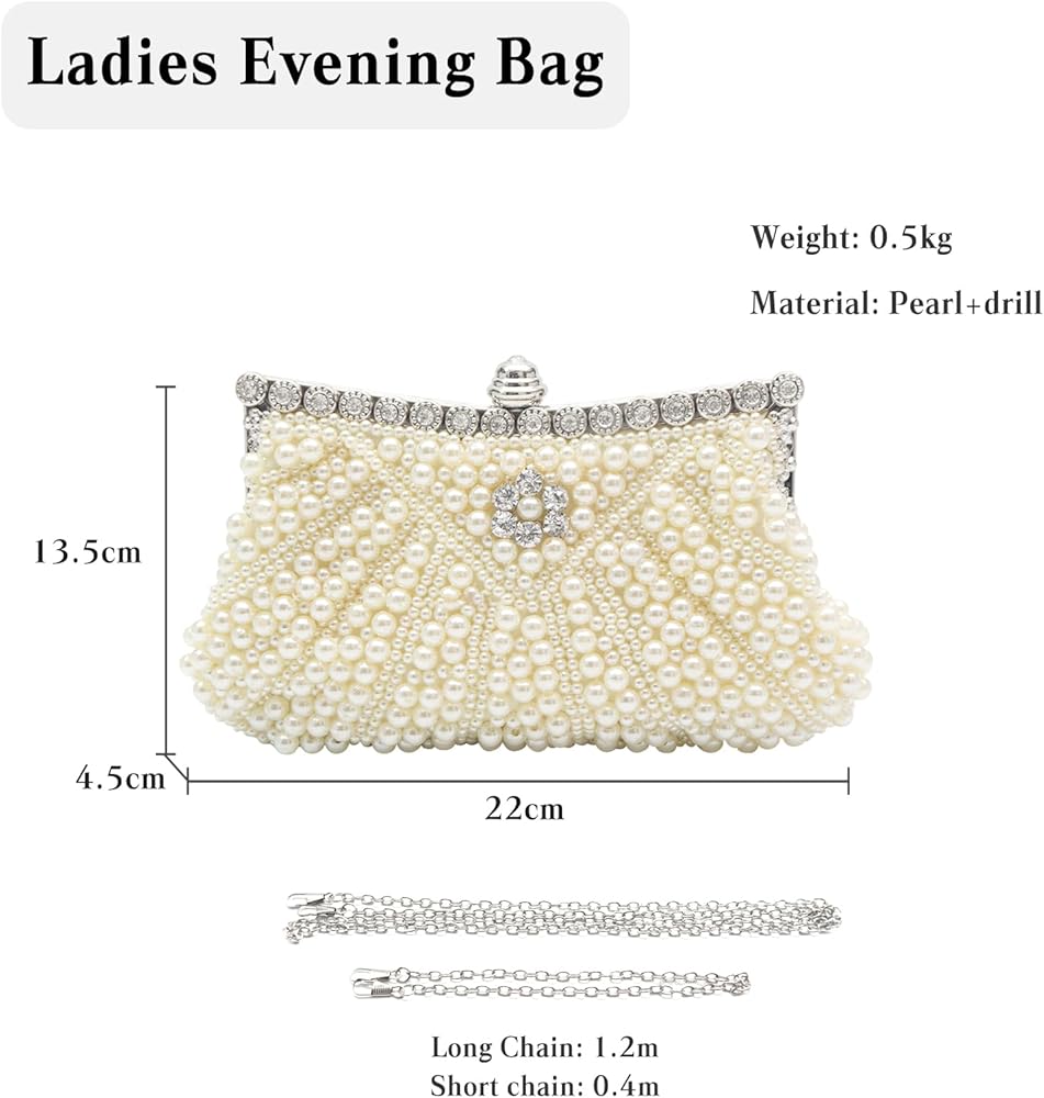 • ✨PERFECT SIZE: The size of this handmade pearl clutch bag is 22 x 4.5 x 13.5cm(length * width * height), which is enough to hold your cell phone, keys, cards, lipstick, cash, pressed powder, sunglass and other items. This clutch purse for women comes with a main compartment, providing ample organizational space to keep your items neat and tidy.