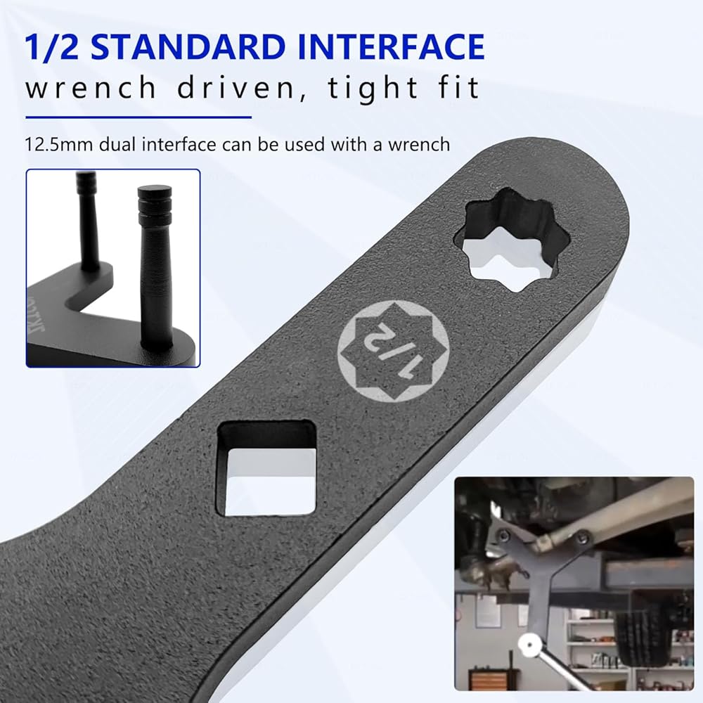 تصميم محمل القوة ذو نقطتين: على عكس الأدوات التقليدية، يساعد هذا التصميم على منع الانزلاق أثناء الاستخدام، مما يضمن بقاء الأداة في مكانها وعدم إتلاف مكونات السيارة الأخرى أثناء العمل على ذراع التحكم السفلي.