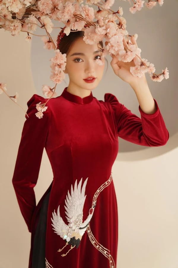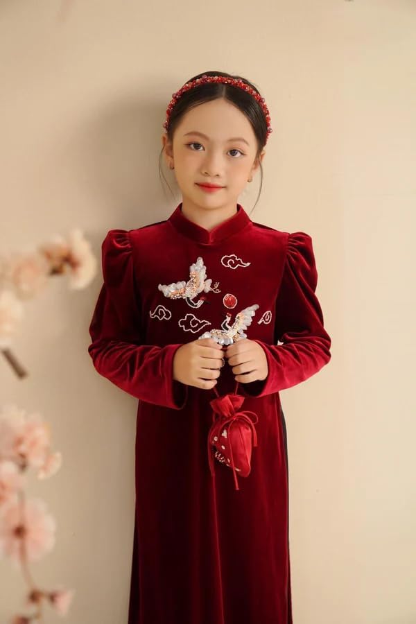 ❣️ This set includes one Ao Dai Top, 1 Pants Style: Girl Traditional Material: Velvet. Stretchy (Girl Style Only Available)